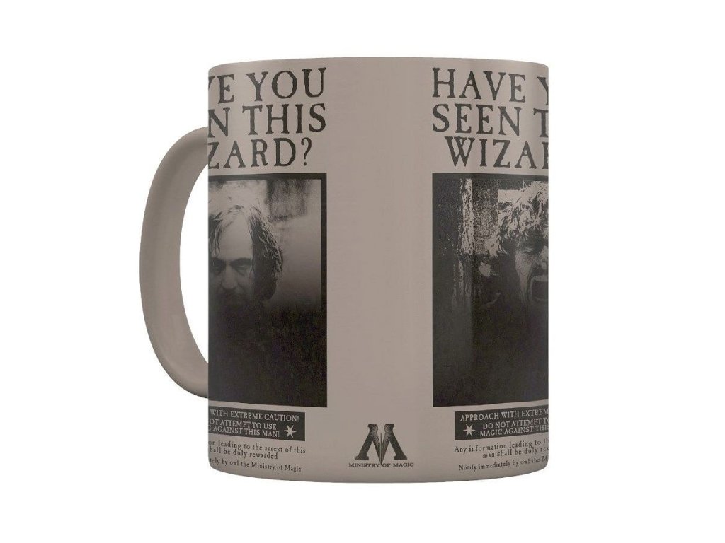 Videli ste tohto kúzelníka? (Have you seen this Wizard?) Tento nápis sa vyníma na hrnčeku, ktorý reaguje na teplotu naliateho nápoja a mení grafiku zachytávajúcu zatknutého Siria Blacka, krstného otca čarodejného študenta a neskôr vedúceho odboru bystrozorov Harry Pottera.