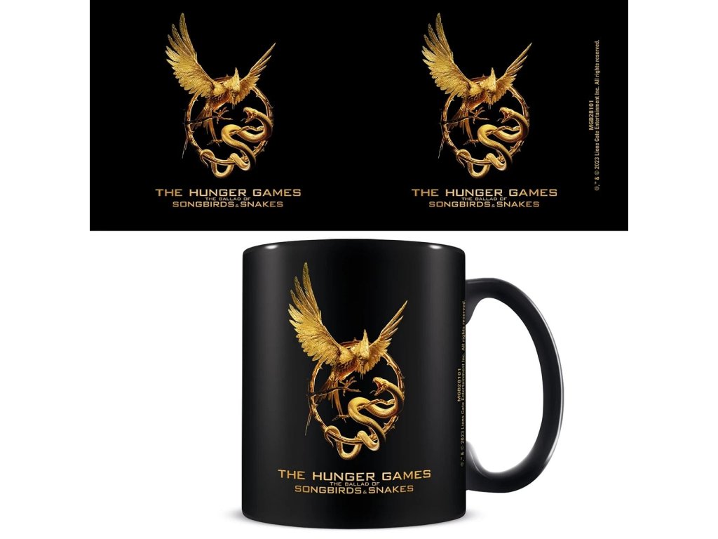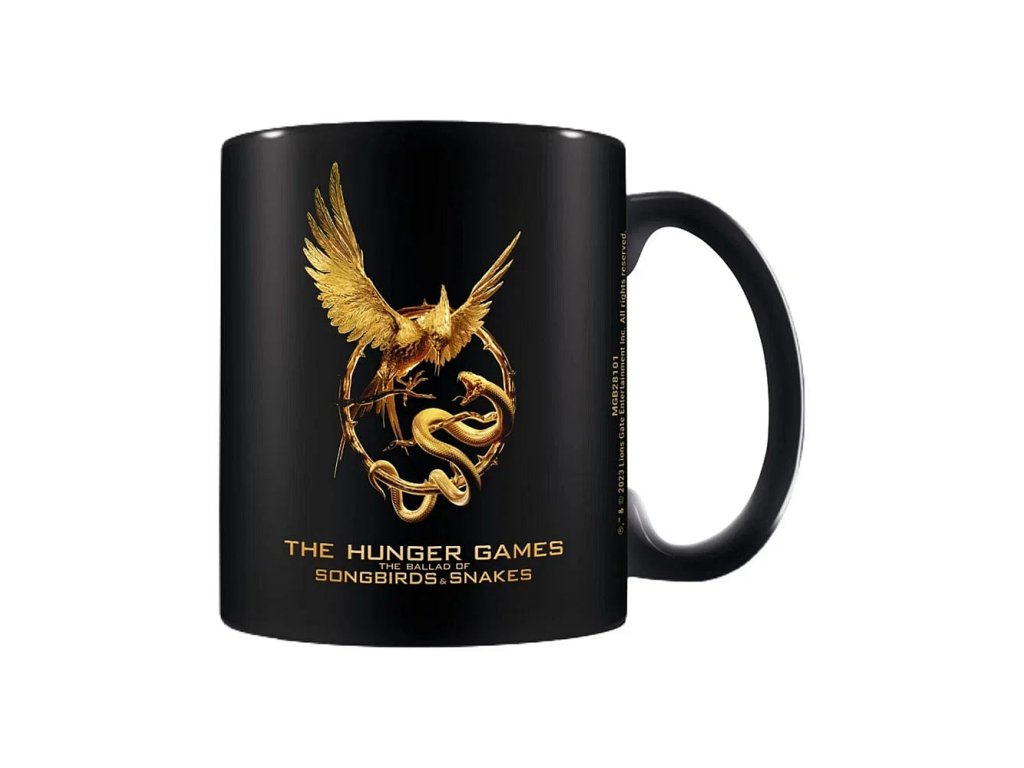 Z čierneho hrnčeka so zlatým symbolom akčne dobrodružného filmu: The Ballad Of Songbirds & Snakes (Hunger Games: Balada o vtákoch a hadoch) ti bude chutiť! Hrnček je vhodný do mikrovlnky a umývačky riadu.