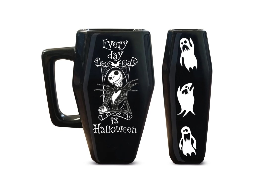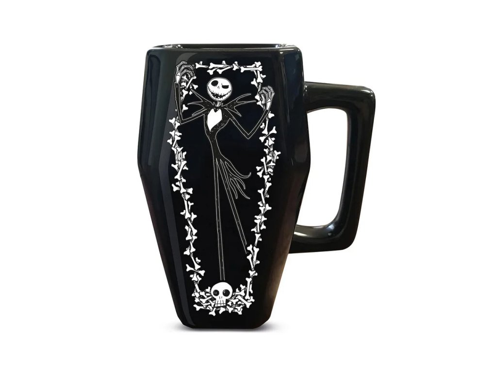 Dopraj si pár dúškov niečoho silného či jemného z jedinečného hrnčeka v podobe rakvy s Jackom Skellingtonom z obľúbeného animáku Ukradnuté Vianoce (The Nightmare Before Christmas) od Tima Burtona. Skvelý hrnček nielen na Halloween! Hrnček nie je vhodný do mikrovlnky a umývačky riadu.