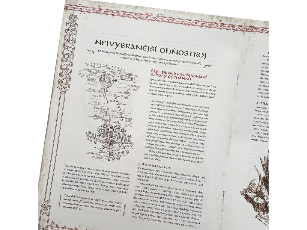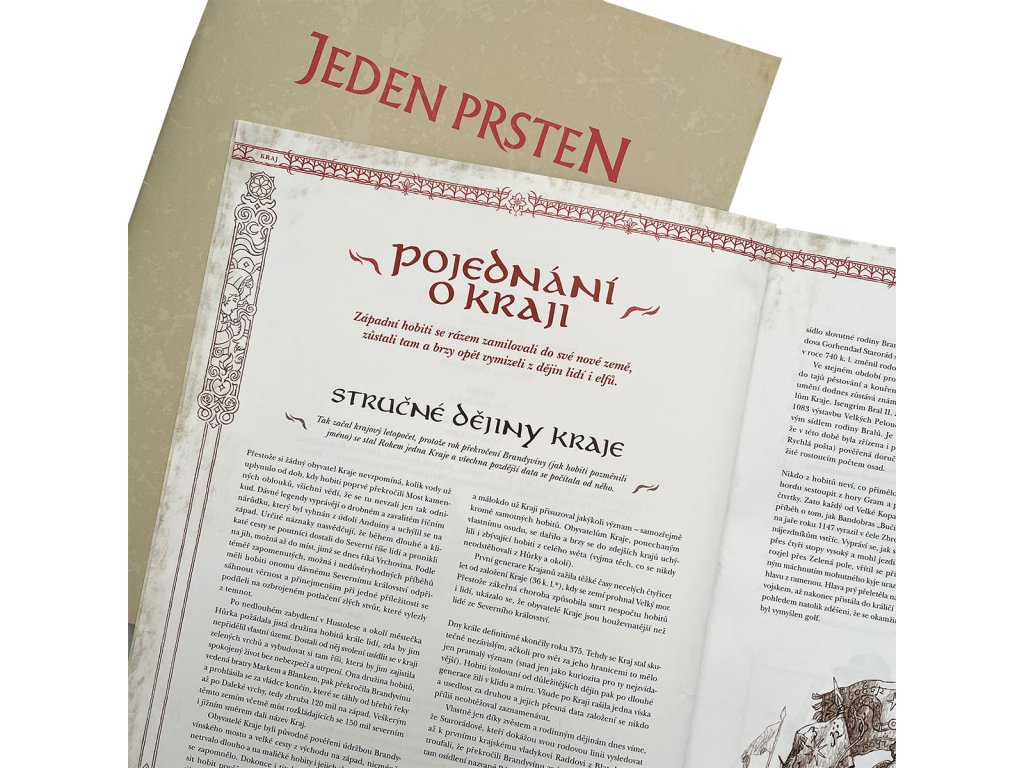 Prišla nezvyčajná pozvánka, v ktorej Bilbo Pytlík prosí o pomoc. Ako podivné! Na druhú stranu je pravda, že okolo dotyčného hobita sa od tej jeho záležitosti s drakom podivnosti vyložene roja. No čo už, krátka prechádzka a drobná výpomoc Bilbovi predsa neuškodí. O žiadne skutočné nebezpečenstvo sa tu u nás v Kraji predsa jednať nemôže… RPG Jeden prsteň: Vaše dobrodružstvo v Stredozemí Vstup do Stredozeme a zaži veľa dobrodružstva tak, ako si o nich vždy sníval. RPG, alebo aj hry na hrdinov, sú typom hier, ktoré ponúkajú možnosť prijať rolu fiktívnej postavy v rozmanitom svete. RPG sú určené pre všetkých, ktorí túžia po dobrodružstve, kreativite a hlbokom zapojení do príbehu. Jeden prsteň – úvod do hry je tvoja brána do magického sveta stvoreného J. R. R. Tolkienom a umožní ti stať sa hrdým hobitom v čase, keď osud Stredozeme ešte visí na vlásku. S týmto setom získaš všetko, čo potrebuješ pre svoje prvé dobrodružstvo! Jeden prsteň - úvod do hry je slovenský predklad hry The One Ring - starter set. Kedy sa hra odohráva? Hra Jeden prsteň z prostredia Stredozeme sa odohráva v období medzi knihami Hobit a Pán Prsteňov. Vezmeš na seba úlohu jedného zo známych i menej povedomých hobitov, ktorí ešte nevedia, akú veľkú úlohu zohrajú v budúcnosti. Poznáš mená ako Drogo Pytlík, Rory Brandorád alebo Esmeralda Bralová? Tieto postavy môžu stáť na čele veľkých činov, ktoré zmenia priebeh dejín! Je to nebezpečný podnik, vykročiť z dverí... S jednoduchými pravidlami a predchystanými postavami sa môžeš rýchlo zapojiť do hry. Žiadna dlhá administratíva a zdĺhavé čítanie. Stačí rozbaliť škatuľu a môžeš vyraziť na neočakávanú cestu. Okrem základných pravidiel a dobrodružstiev zahŕňa tento štartér set aj kompletného sprievodcu všetkými časťami Kraja. Od idylického Zeleného Chlumku na západe po mohutné Rádovsko pri Starom hvozde na východe. Máš možnosť preskúmať zákutia tejto úžasnej zeme a objaviť jej tajomstvo. Obsah: zošit pravidiel zošit s popisom Kraje zošit s dobrodružstvami osem obojstranných listov pripravených postáv dve veľké mapy znázorňujúce Kraj a Eriador 30 kariet vybavenia, ktoré sa dajú využiť aj s hlavnými pravidlami Jedného prsteňa šesť obojstranných kariet rolí na ceste a bojových postojov, ktoré sa dajú využiť aj s hlavnými skutky šesť kociek k6 na úspechy Vstup do Stredozeme s RPG hrou Jeden Prsteň – úvod do hry, a priprav sa na dobrodružstvo, ktoré zmení tvoj život! V priebehu roku 2024 plánuje vydavateľstvo Mytago vydať základnú príručku pre hru Jeden prsteň: hra na hrdinov. Ak stále tápeš prečítaj si recenziu od Markusa, či recenziu na Gaming Professors