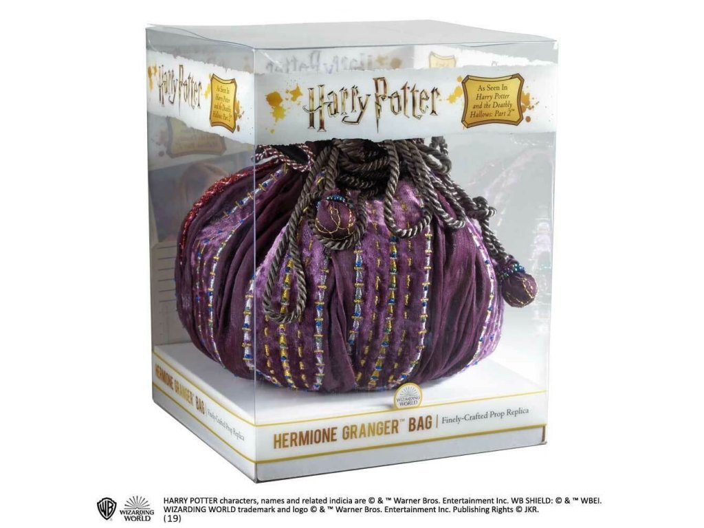 Pekná replika kabelky Hermiony Grangeorovej z filmu Harry Potter a Dary smrti je ozdobená korálkami a perličkami. Skvelý doplnok kostýmu či darček pre fanynky príbehov plné kúziel a mágie z Rokfortu.