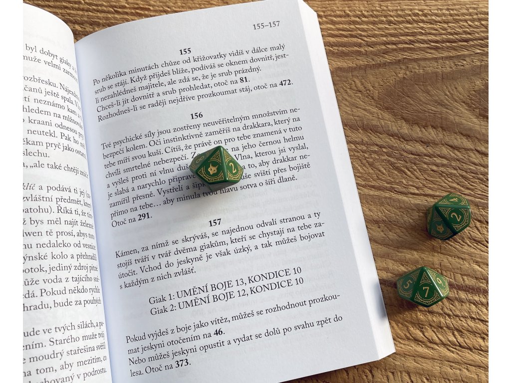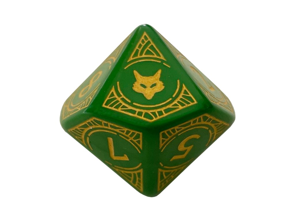 Štýlová desaťstenná kocka, inšpirovaná dobrodružstvami Lone Wolfa. Namiesto čísla 0 má vlčiu hlavu – symbol Osamelého vlka. Hodí sa nielen na hranie Lone Wolf RPG, ale hlavne ako štýlový doplnok ku gamebookovej sérii od Joe Devera. Nepostrádateľný pomocník každého rytiera rádu Kai pri cestách po Magnamunde. Priemer kocky je približne 15 mm.