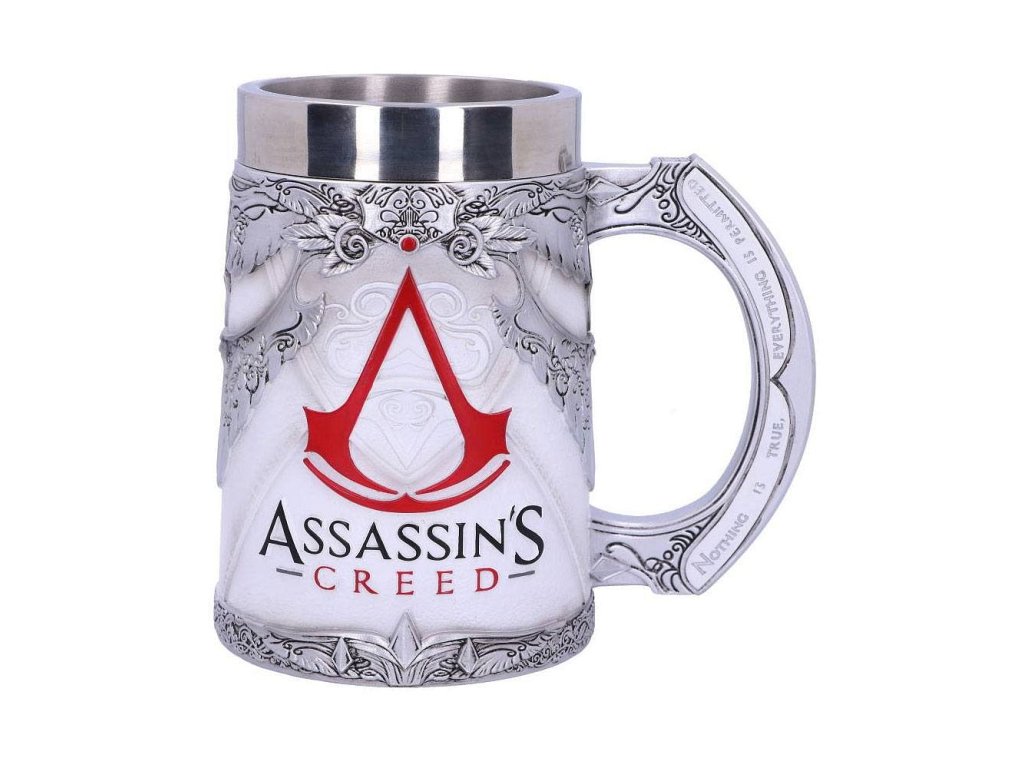 Korbel pre hráčov populárneho herného radu Asassin s Creed dodá sily všetkým asasínom, až ich budú najviac potrebovať. Skvelý spoločník pre dlhé herné večery! Vnútri korbelu sa nachádza vyberateľný nerezový insert pre ľahšiu údržbu, samotný pohár je z resinu (syntetická živica). Nevhodné do umývačky riadu a mikrovlnnej rúry.