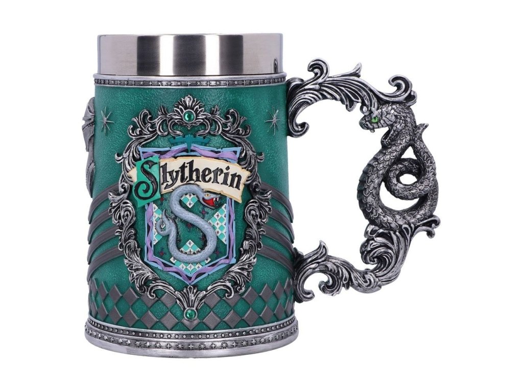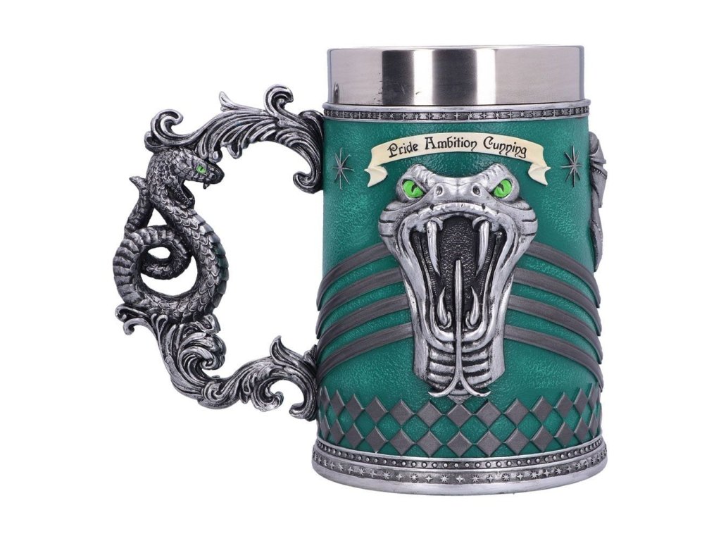 Hadí patrón Zmijozelu cení jedovaté zuby z jedinečného zeleného korbelu pre čarodejníkov a mágmi tejto kúzelníckej koľaje. Ak má Slizolin vaše sympatie, potom nezostáva, než mu pripiť korbelom určeným pre verných fanúšikov Harryho Pottera! Ručne maľovaný korbel zo syntetickej živice má vyberateľný nerezový insert pre jednoduchú údržbu. Korbel nie je vhodný do mikrovlnnej rúry ani do umývačky riadu.