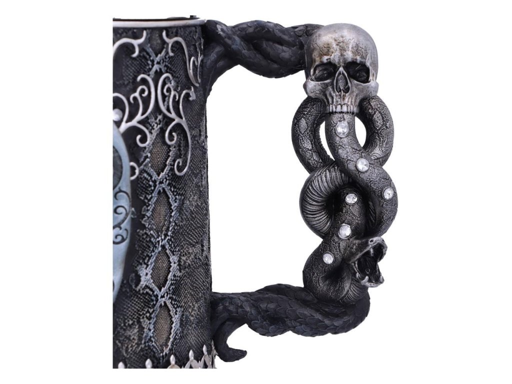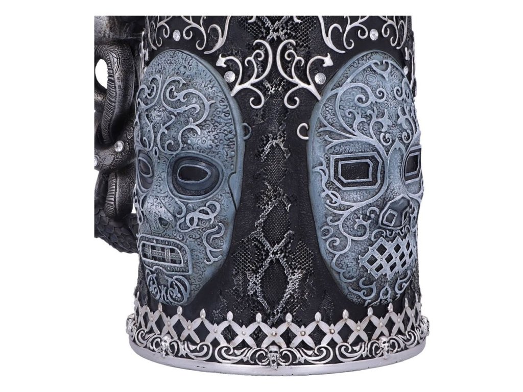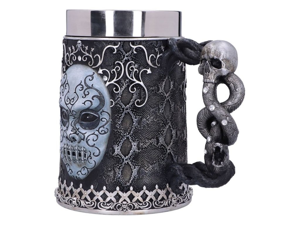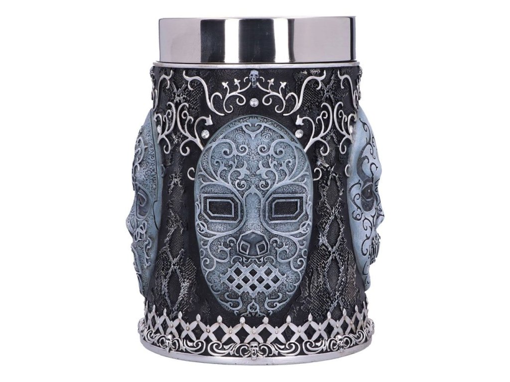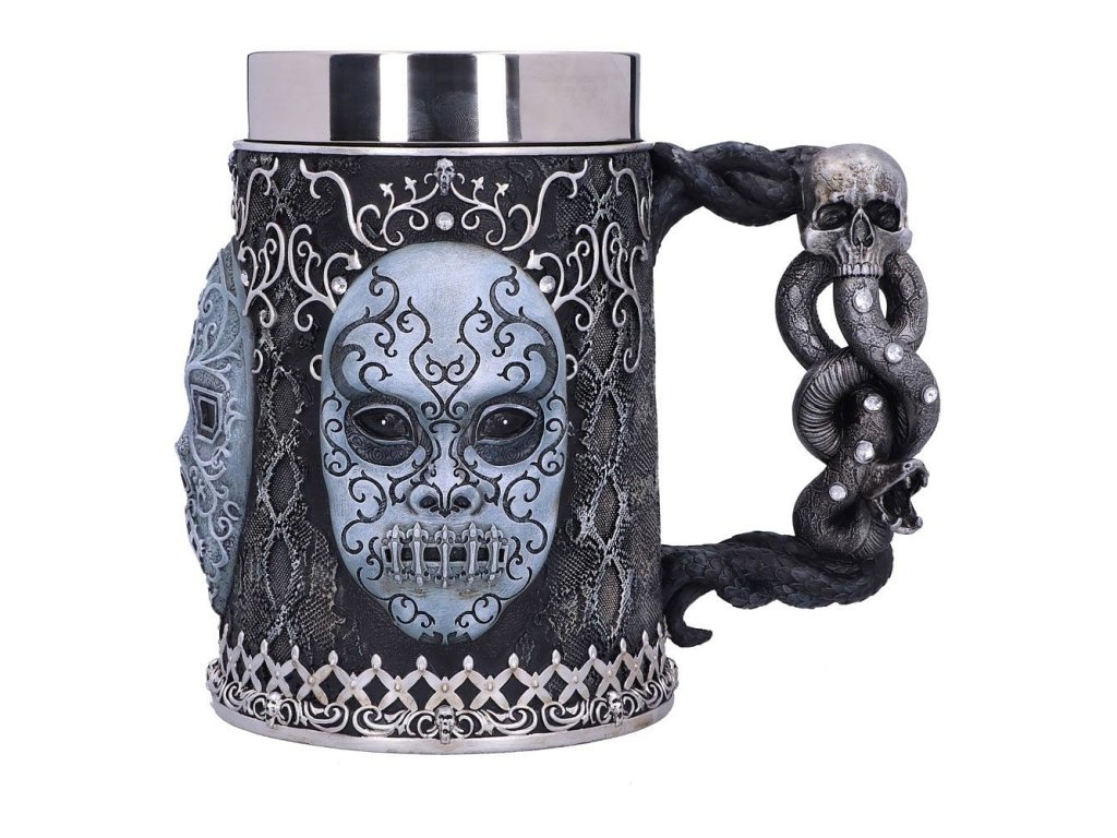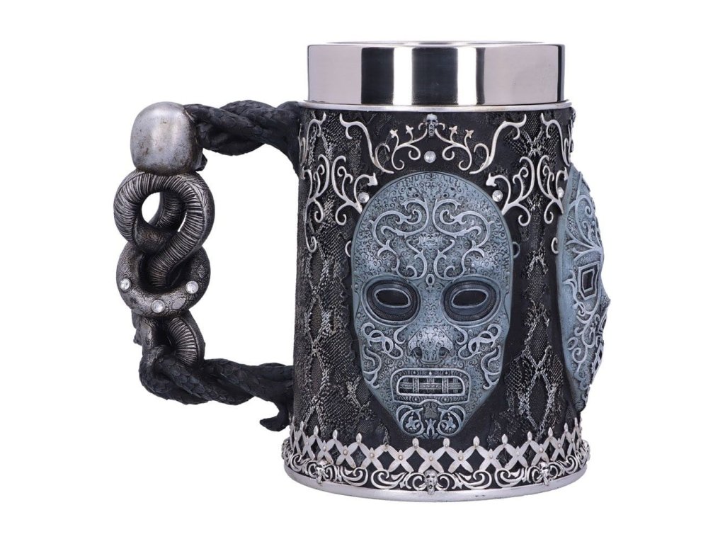 Korbel s maskami Smrťožrútov, verných spojencov toho, ktorého meno nesmieme vysloviť! Pôsobivý spoločník pre všedné aj nevšedné večery a pekný darček pre fanúšikov príbehov o Harrym Potterovi. Ručne maľovaný korbel zo syntetickej živice má vyberateľný nerezový insert pre jednoduchú údržbu. Korbel nie je vhodný do mikrovlnnej rúry ani do umývačky riadu.