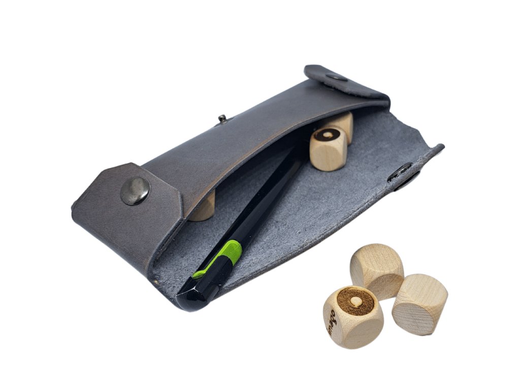 Toto kožené puzdro na kocky je výhra na všetkých frontoch! Praktický pomocník pre tvoje dobrodružstvá vo svete Zaklínač: Hra na hrdinov. Štýlové šedé puzdro je ozdobené zaklínačskými runami. Je spevnené cvočkami a na jednoduchšie skladovanie sa dá jednoducho rozložiť úplne naplocho. Je dosť priestranné, aby sa do neho zmestili nielen kocky, ale aj písacie potreby ako sú ceruzka, perá a guma. Proste praktická a pragmatická sada hodná zaklínača. Zháňaš štýlovú zaklínačskú sadu? V našej ponuke nájdeš tiež Kožený vačok s vlkom, Kožený vačok s runami alebo farebne zladený praktický Kožený dice tray.