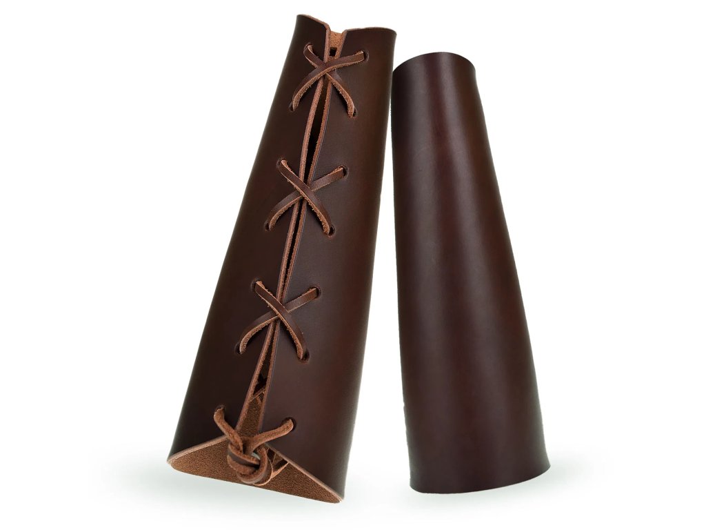 Nátepník je neodmysliteľná ochrana zápästia všetkých bojovníkov, je možné ho zároveň použiť ako doplnok ku kostýmu. Je vyrobený z cca 2,5 mm hrubej kože, zavazuje sa koženou šnúrkou, ktorá je dodávaná s nátepníkom. Nátepník je dĺžky 23 cm, okolo zápästia má obvod 16,5 cm. Na prianie je možné zhotoviť aj iný rozmer, namoriť inou farbou (napr. modrou, červenou, žltou...) alebo pridať zdobenie nátepníka raznicou či motivom podľa vášho návrhu. V ponuke máme aj variant s kovovými priechodkami. Uvedená cena je za jeden nátepník.