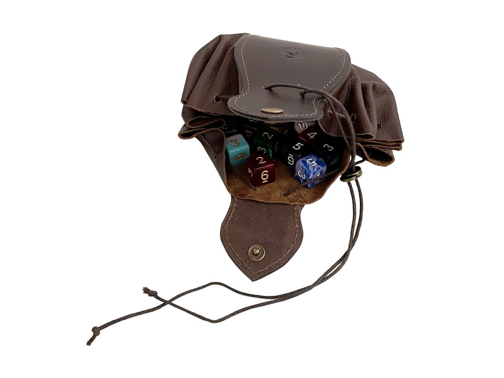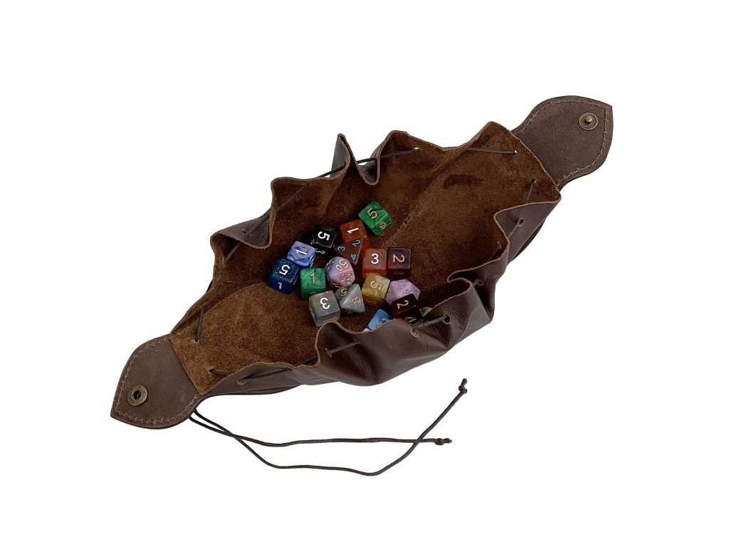 Kocky rozhodujú o živote i smrti – a preto si zaslúžia miesto, ktoré je hodné ich moci! Náš kožený vačok na hádzanie kociek je ideálny spoločník pre každého hráča, dobrodruha aj zberateľa, ktorý nechce nosiť svoje herné poklady v obyčajnom vrecku. S týmto vačkom budeš vždy v strehu! Narazil si na beštiu a potrebuješ sa jej zbaviť? Je to jednoduché! Stačí si náš vačok zložiť z opasku, položiť na rovnú plochu a otvoriť. Akonáhle ho otvoríš – premení sa na funkčné Dice tray. Už žiadne stratené kocky! Rozmery - 17,5 x 9 cm. Dice tray má 26 cm. Na výber máš z dvoch farieb: hnedej a čenej. Je ručne vyrábaný v našej imago dielni, z pravej hovädzej kože a zdobený naším vlastným znakom.