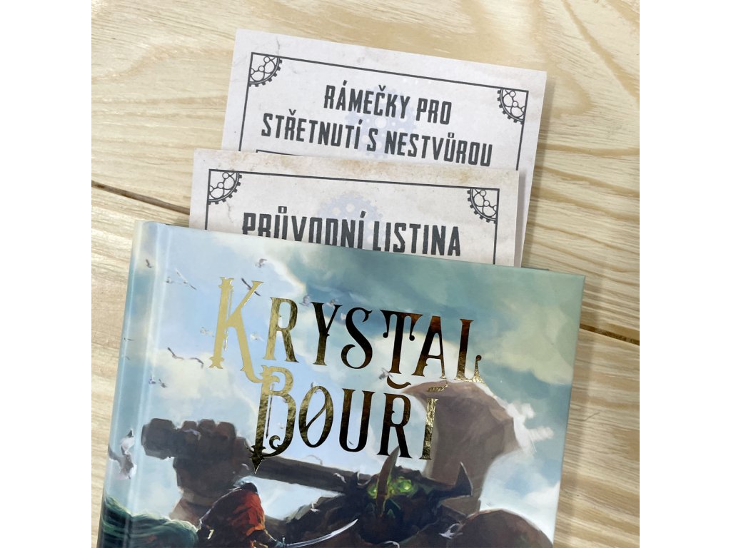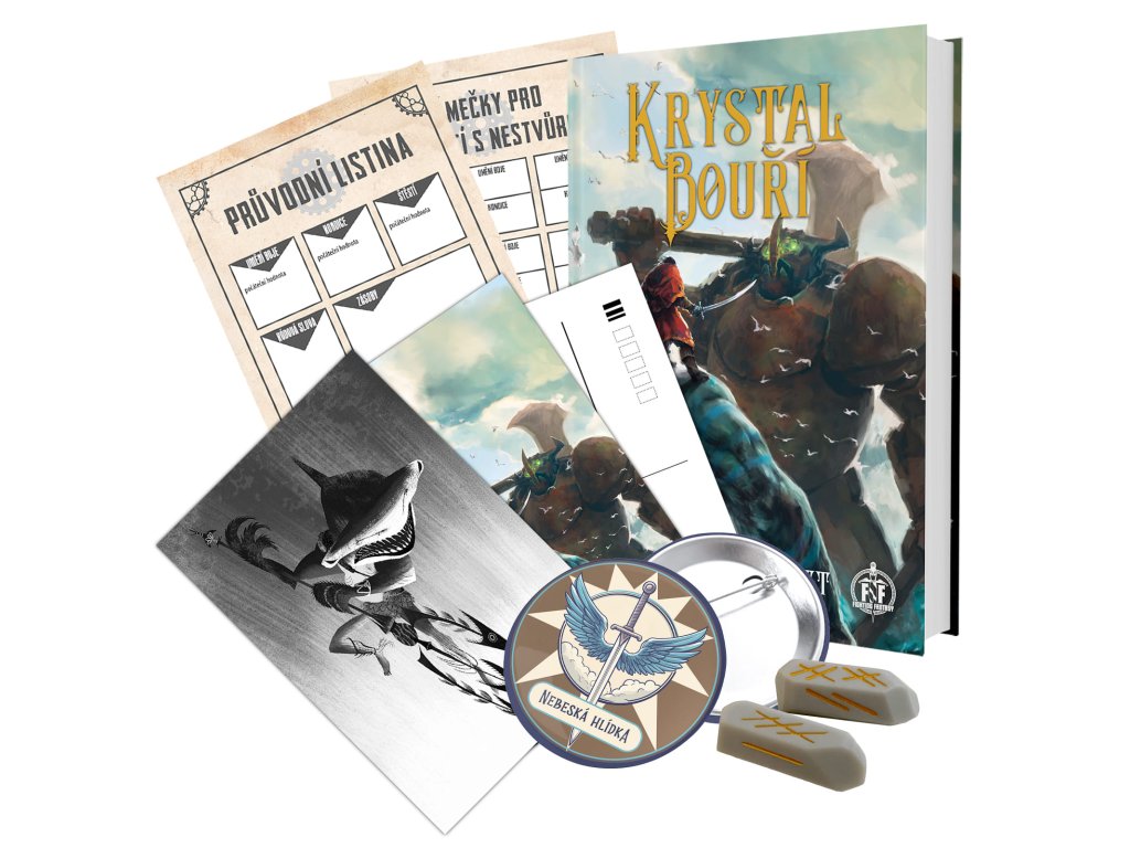 Vydaj sa do vznášajúceho sa súostrovia Pangarie ako člen Nebeskej hliadky a čel hrozbe, ktorá môže zničiť celý svet. Keď sa ostrovček Nimbus zrúti do Oceánu búrok, je na tebe preskúmať zvyšné ostrovy, bojovať s búrkami a morskými príšerami a pokúsiť sa vyzdvihnúť Nimbus z hlbín. Tento gamebook z legendárnej série Fighting Fantasy, prvýkrát v slovenčine, pochádza z pera Rhianny Pratchett, dcéry slávneho spisovateľa Terryho Pratchetta. Priprav sa na napínavé dobrodružstvo, kde každé tvoje rozhodnutie ovplyvní osud Pangarie. Zberateľský komplet obsahuje okrem knihy Kryštál búrok aj unikátne kocky v tvare kryštálu, záložku, dve pohľadnice s motívmi z knihy a odznak Nebeskej hliadky. Obsah kompletu: Kryštál búrok Unikátne kocky v tvare kryštálu (2xk6) Sprievodná listina vo forme záložky Dve jedinečné pohľadnice s motívmi z knihy Placka odznak Nebeské hliadky