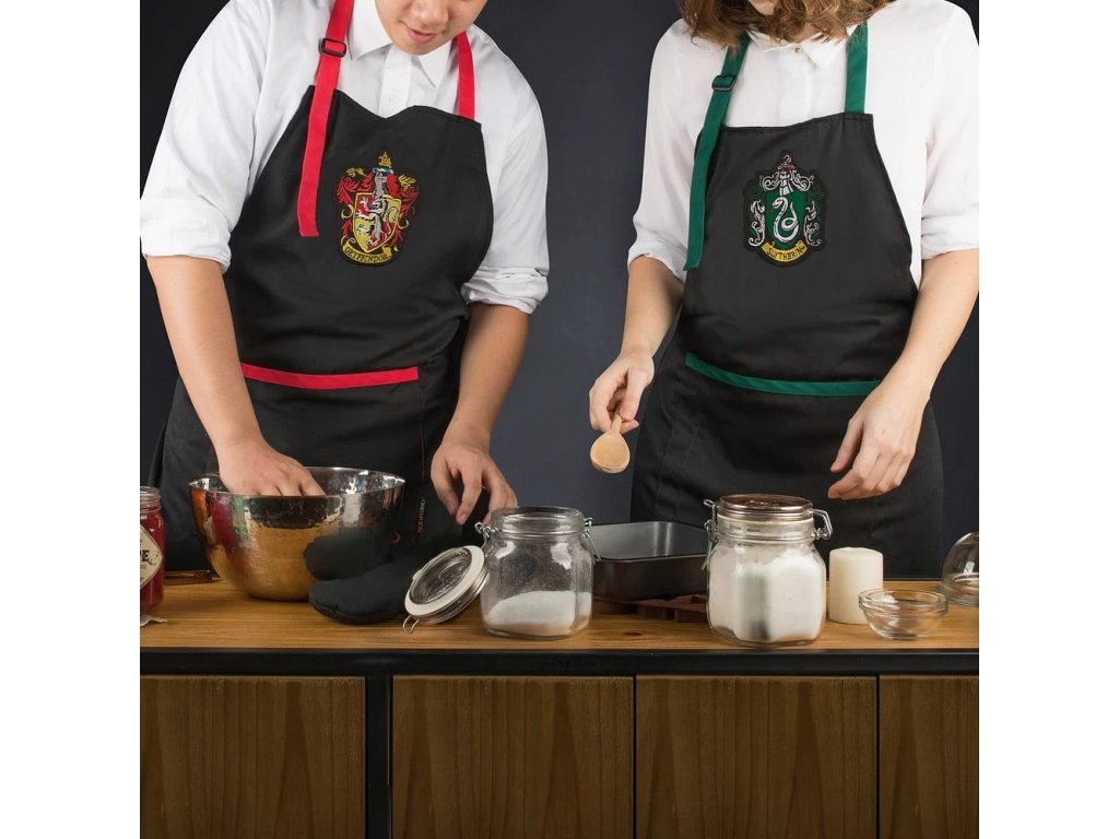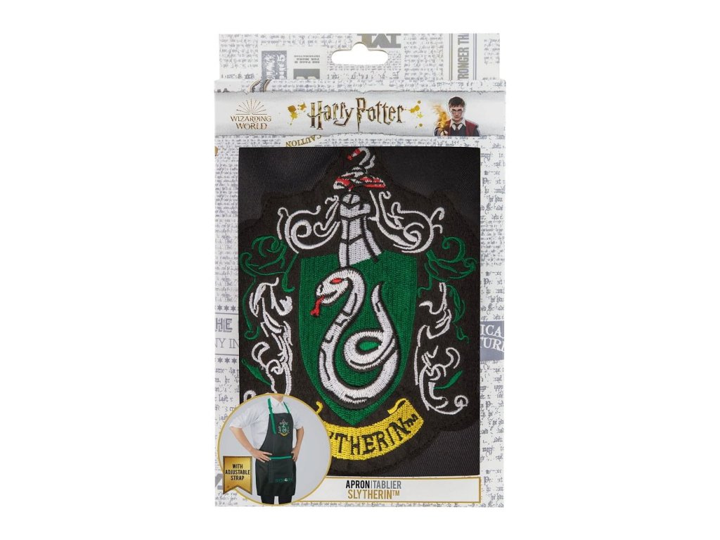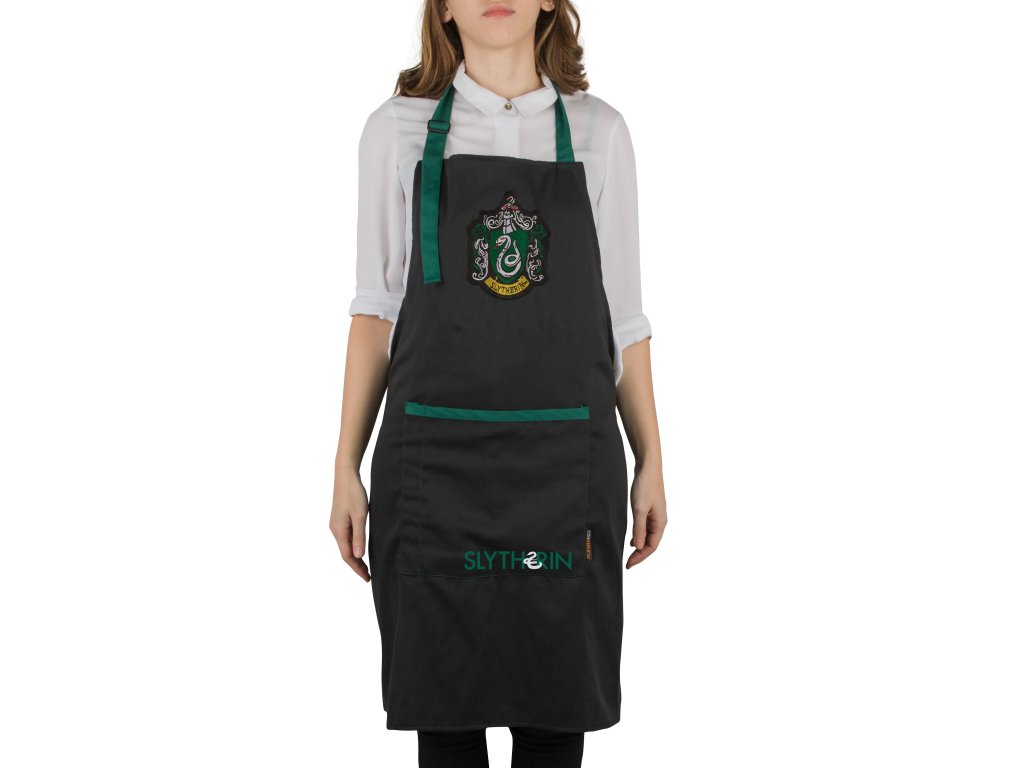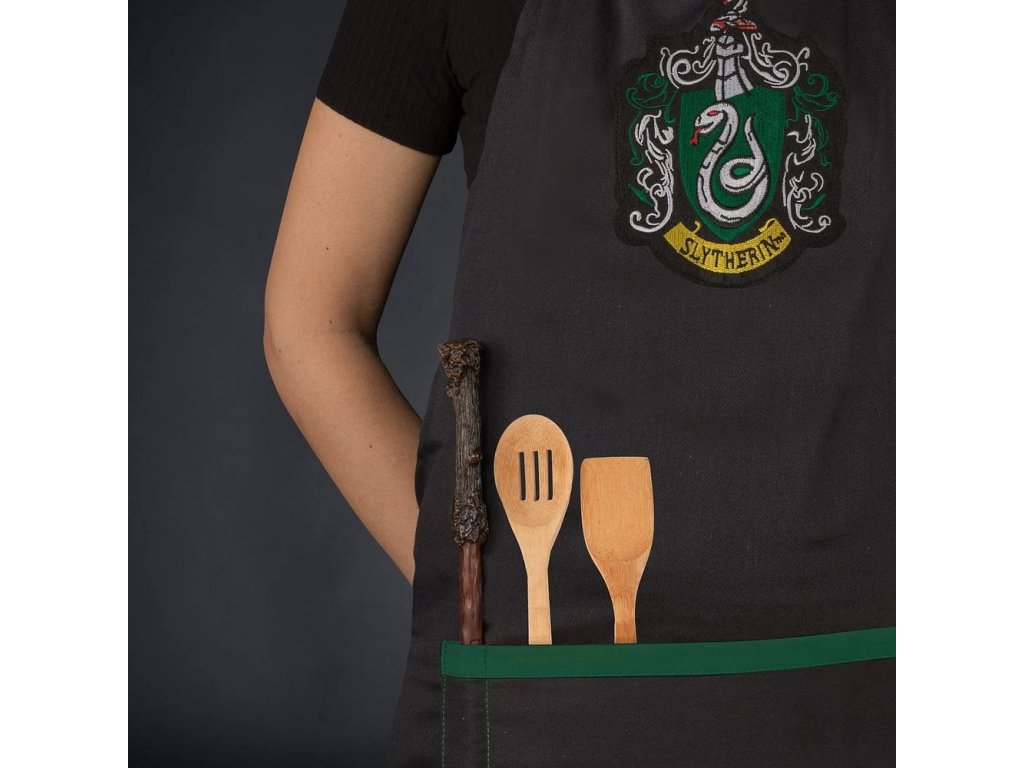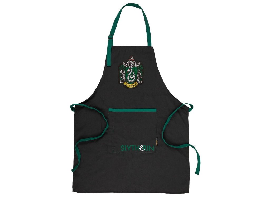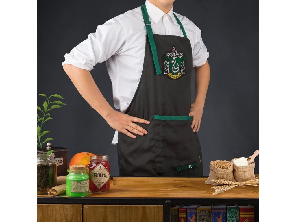 Vybavte sa na kuchynskú mágiu touto peknou zásterou so znakom Rokfortskej koľaje Slizolin z kníh a filmov o Harrym Potterovi! Zástera má veľké vrecko, do ktorého schováte ako varešku, tak akúkoľvek kúzelnícku ingredienciu.