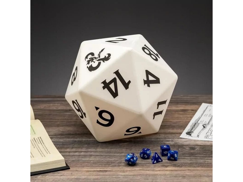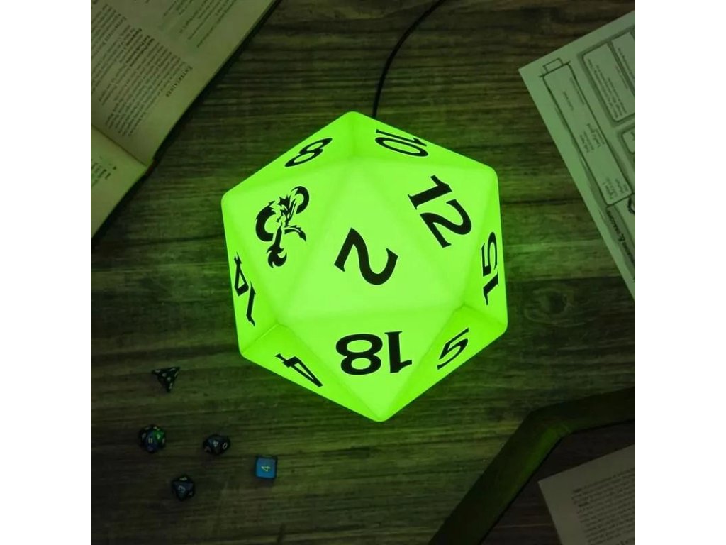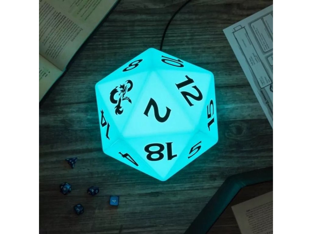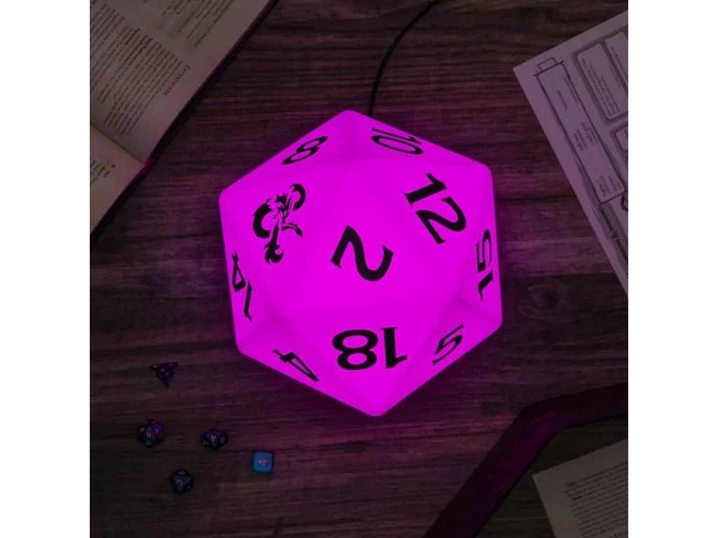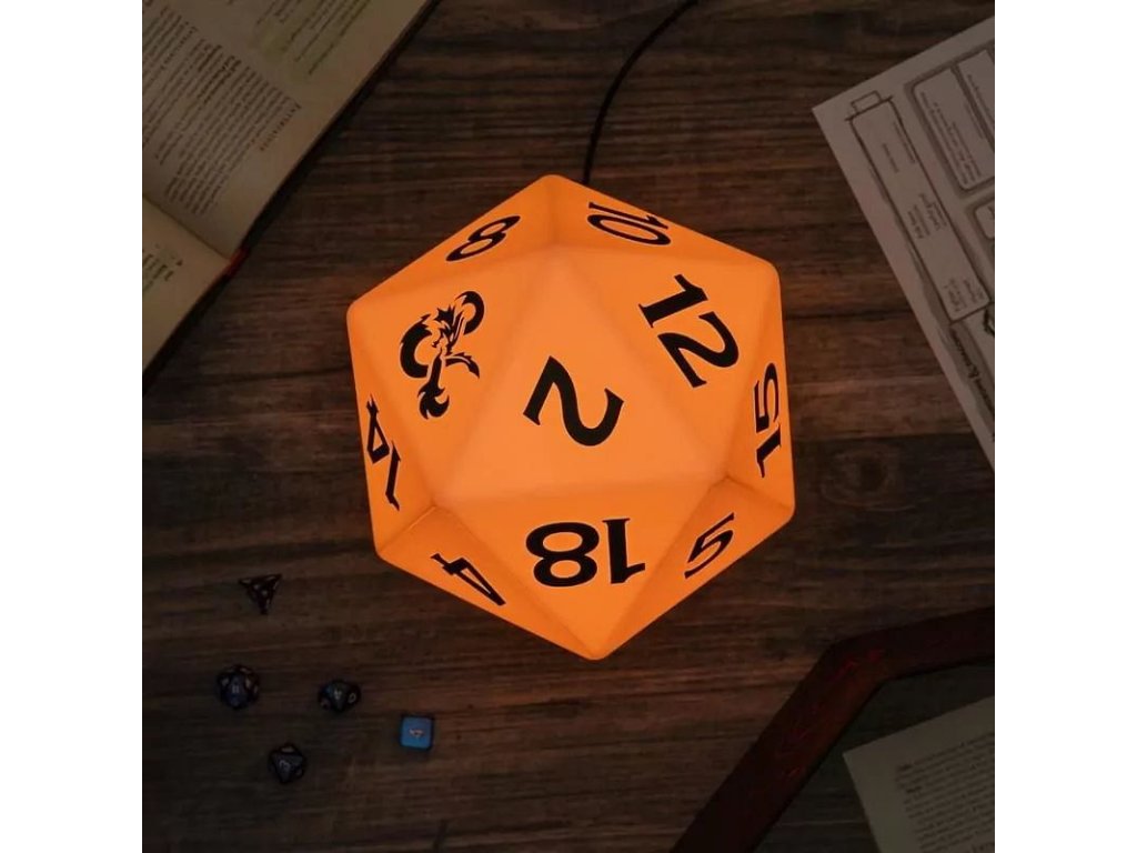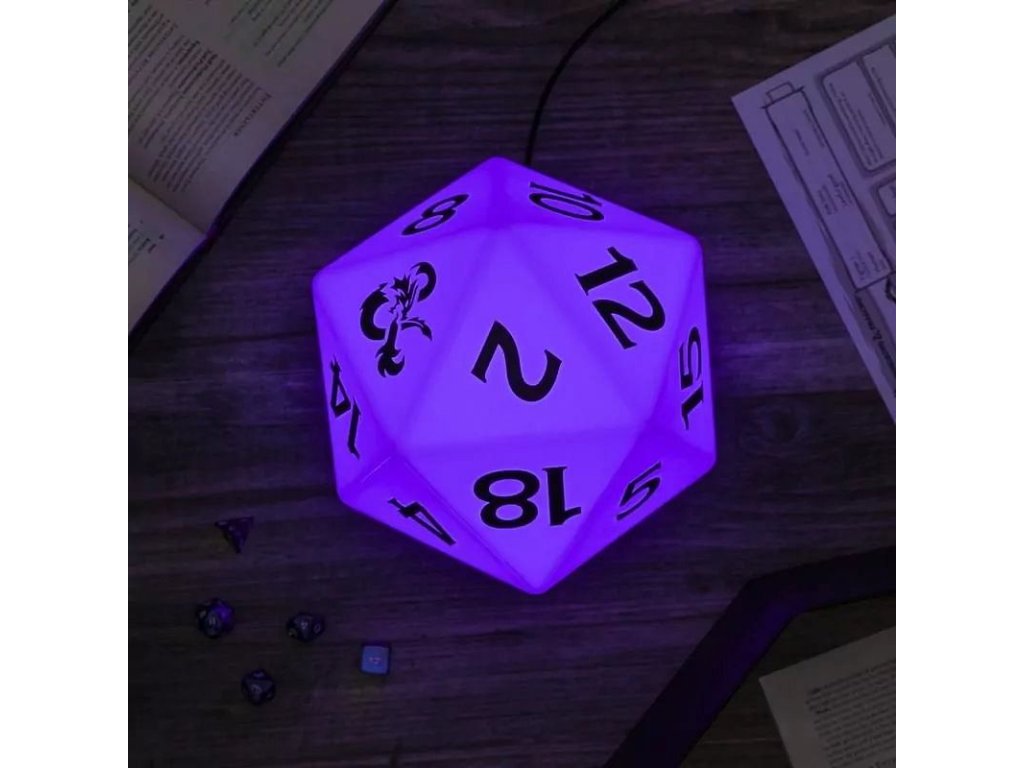 Lampa v podobe dvadsaťstennej kocky k20 z populárnej hry na hrdinov Dungeons & Dragons prepožičia vašim hrám jedinečnú atmosféru. Kocka mení farby medzi bielu - žltú - oranžovú - orgovánovú - tyrkysovú. Lampa je vyrobená z ekologického biodegradabilného plastu (BDP). Ak sa chcete dozvedieť, čo že to BDP je, žmurknite na video od výrobcu. Lampa sa napája USB káblom, ktorý je súčasťou balenia.