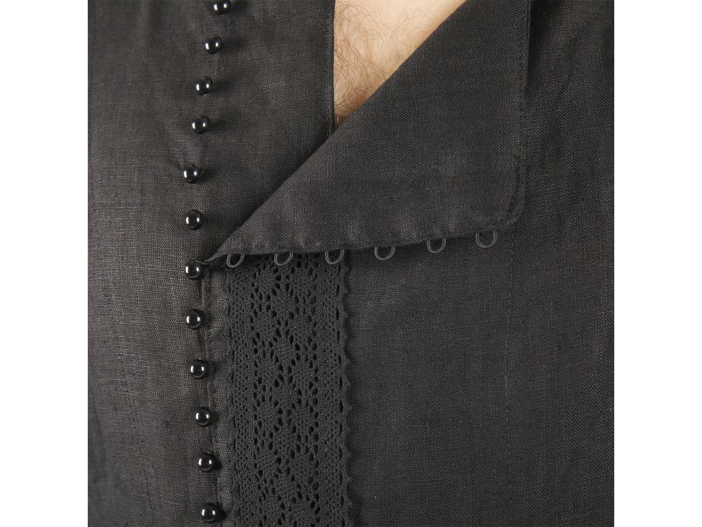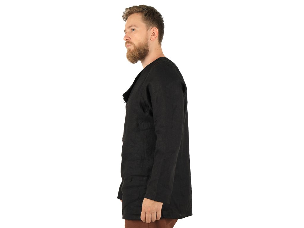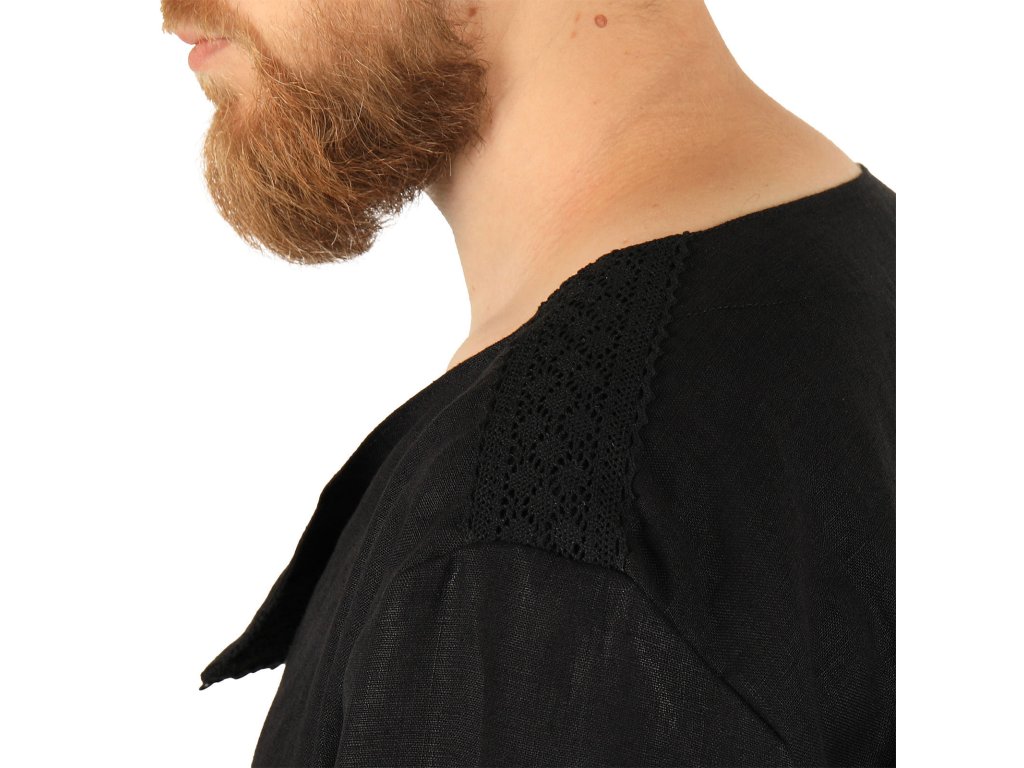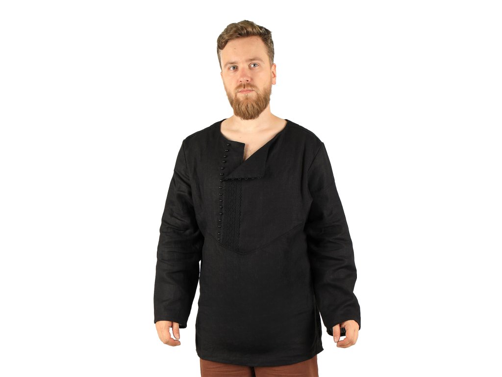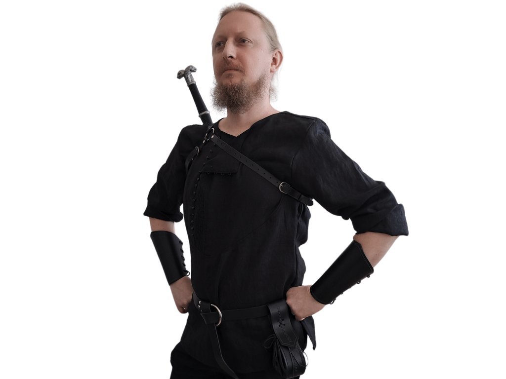 Staň sa Rezníkom z Blavikenu, povestým Gwynbleidom alebo jednoducho zaklínačom Geraltom. Obleč sa do slušivej čiernej ľanovej tuniky, ktorú inšpiroval outfit Geralta z populárneho Netflix seriálu. Každý detail tohto štýlového kúsku bol starostlivo navrhnutý tak, aby pripomínal zdobenú čiernu tuniku, ktorú Geralt v seriáli odhalí pri niekoľkých príležitostiach. Tunika Geralt je vyrobená z vysoko kvalitného ľanu, ktorý je ideálny pre dlhé dobrodružstvo v každom prostredí. Zaujímavé dekoratívne švy, rad okrúhlych gombíkov a zdobenie čipkou dodávajú tunike Geralt eleganciu a netradičnosť. V prieramku (v podpazuší) je všitá tzv. kvapka pre lepšiu pohyblivosť ruky, čo z tuniky robí skutočne dokonalý kúsok pre akúkoľvek príležitosť. Ľanová tunika Geralt nie je len pre fanúšikov cosplaya a LARPu. Je to štýlový kúsok, po ktorom môžeš siahnuť aj v bežnom živote. Ukáž svoju oddanosť svetu Zaklínača každý deň! Model na fotografii je 182 cm vysoký a na sebe má tuniku veľkosti M.