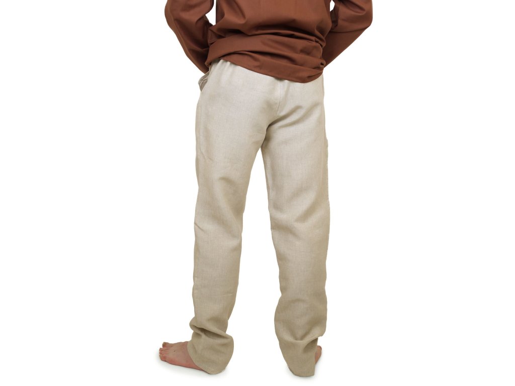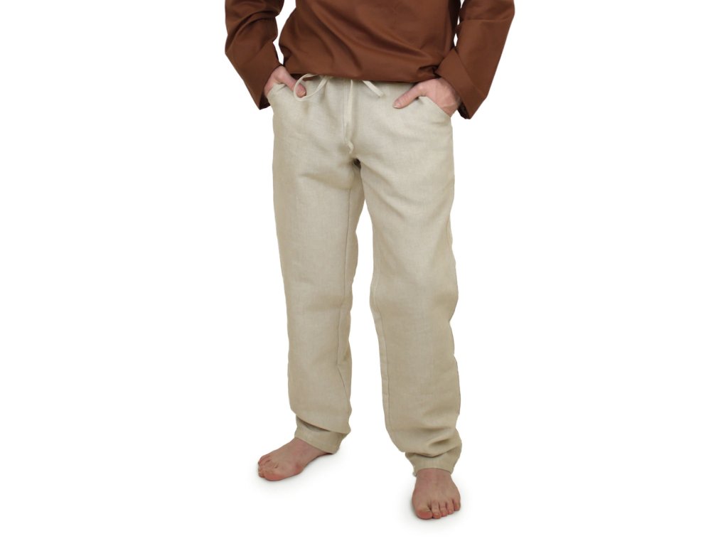 Jednoduché pánske nohavice voľného strihu, na ktorých ušitie naše krajčírky použili kvalitné 100% ľan, si ihneď zamilujete. Ľanová látka vyniká svojou ľahkosťou a priedušnosťou, ktorú oceníte predovšetkým v letných mesiacoch. V záhradke si pokojne môžete vychutnať jedno, dve alebo tri... V páse sú nohavice regulované šnúrkou - vždy je možné povoliť či stiahnuť. A do vreciek sa vám zmestí dostatok zlatiek, aby ste mohli pozvať na žejdlík aj priateľov. A ak sa na druhý deň chystáte na výpravu, do boja, na záhradu či na rodinný obed, ľanové nohavice si pokojne nechajte na sebe, hodí sa na každú príležitosť! Ľanové pánske nohavice šijeme v dvoch farbách: prírodná, čierna. Chceli by ste hodiť do ľanu aj svoju drahú polovičku? Mrknite na našu ponuku ľanovej módy, kde rozhodne niečo vyberie.