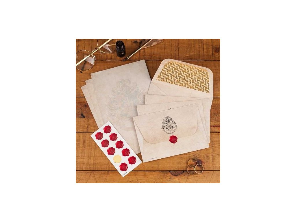 Pošlete přátelům pozvánku do Bradavic! Ať už se chcete podělit o svá nová čarodějnická dobrodružství nebo hledáte ten pravý dárek pro fanoušky Harryho Pottera, tato dopisní souprava je to pravé! Sada obsahuje 20 listů dopisního papíru velikosti A5, 10 obálek s bradavickou pečetí na zadní straně a 10 samolepek v podobě té samé voskové pečeti, takže můžete propůjčit svému psaní ještě větší autenticitu!
