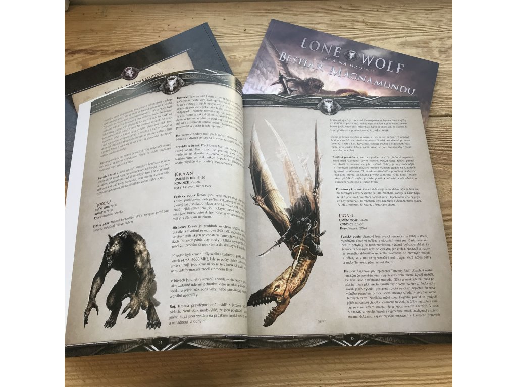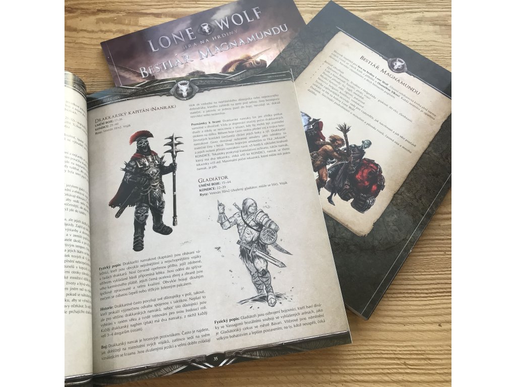 Posledný počin z rodiny RPG Lone Wolf - hra na hrdinov. Zborník nepriateľov a beštií prináša dôležité informácie pre vaše dobrodružstvo v krajinách Magnamundu. Každá netvora v knihe má svoju špecifickú ilustráciu, detailný popis a podrobne popísané herné vlastnosti. V beštiári nájdete okrem temných stvorení ako giakové či zlanbeasti, aj bežné tvory – levy, tigre alebo medvede. Obry, ogrony. Bandity aj pirátov. Vďaka detailným dodatkom sa tiež naučíte netvory sami vytvárať a tým obohatiť váš herný svet Osamelého vlka o jedinečné stvorenia. Beštiár Magnamundu by rozhodne nemal chýbať v zbierke žiadneho milovníka legendárnej tvorby Joe Devera.