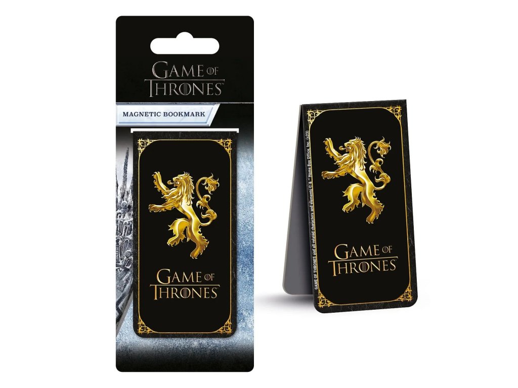 Magnetická záložka so zlatou levou insígniou rodu Lannisterov z Hry o tróny ti spoľahlivo stráži práve rozčítanú stranu knihy! Záložka, ktorá len tak nevypadne. Skvelý doplnok čitateľskej výbavy pre milovníkov fantasy série Game of Thrones.