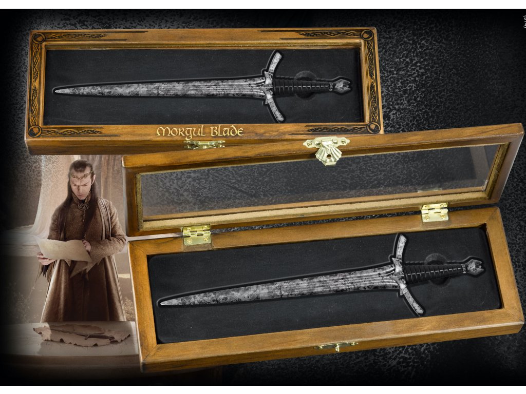 Zmenšená replika Morgulského čepele, zbrane Pána Nazgůlov z filmového spracovania Tolkienovho Pána prsteňov. Nôž je dlhý 20 cm, balený je v drevenej krabičke s rozmermi 25 x 8 x 3 cm, veľmi verná replika, ktorá poteší všetkých fanúšikov Hobita.