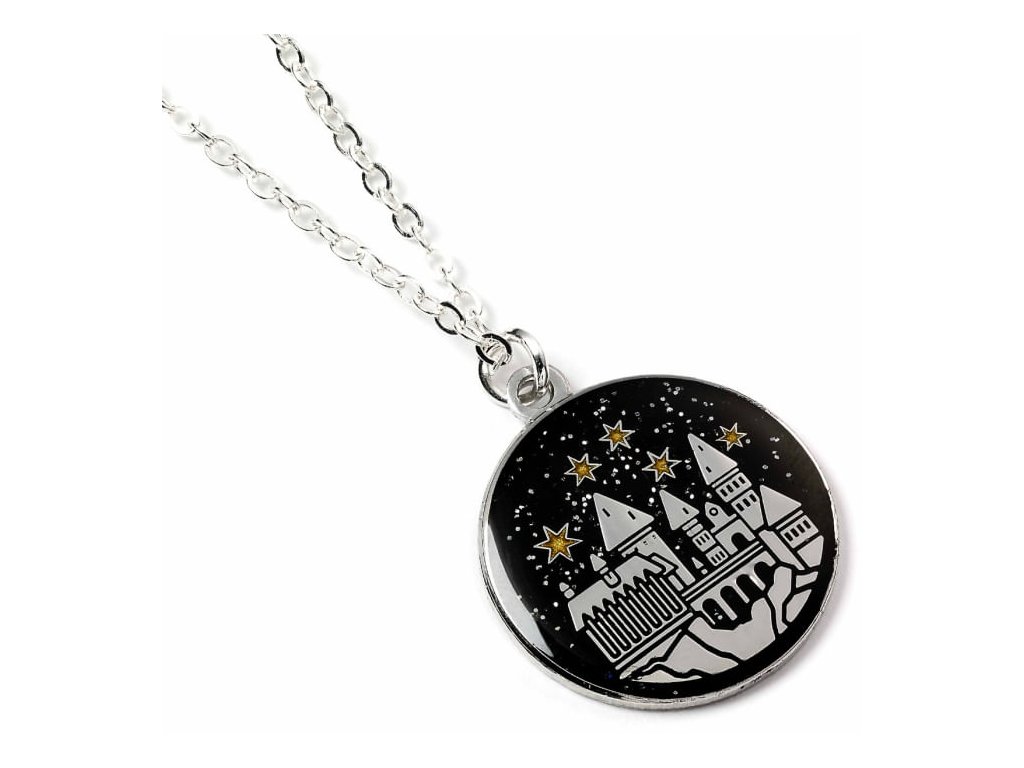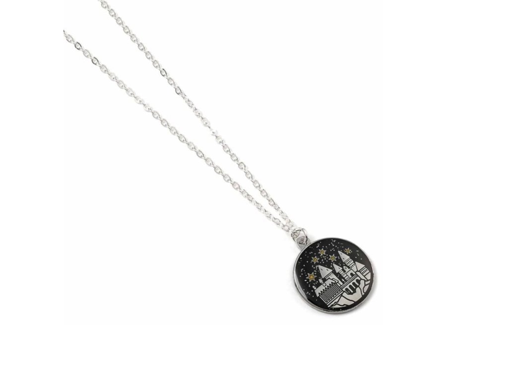 Tento elegantný postriebrený náhrdelník s precízne spracovaným obrysom hradu Rokfort zo sveta Harryho Pottera, zvýrazneným čiernym smaltom, je očarujúcim doplnkom, ktorý upúta na prvý pohľad. Vďaka nastaviteľnej dĺžke retiazky (40 cm + 4 cm predĺženie) skvele padne každému. Perfektný darček pre každého čarodejníka aj mudlu!