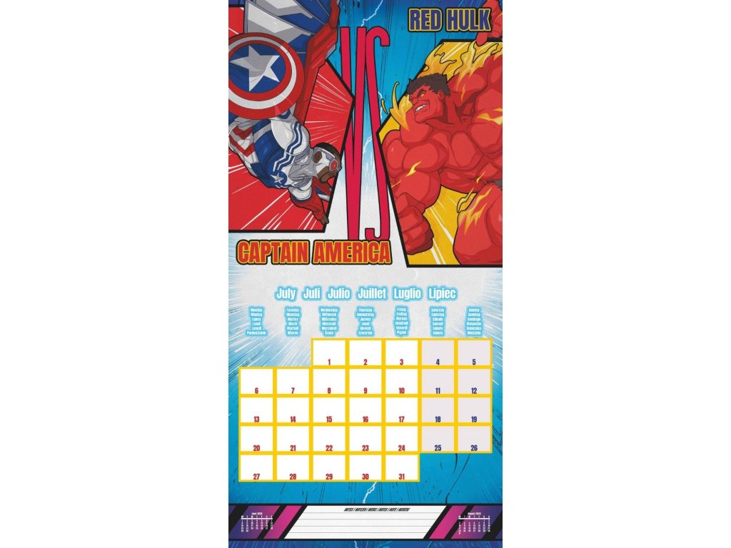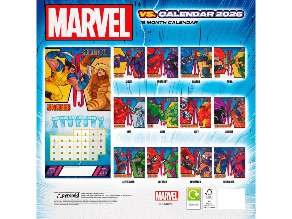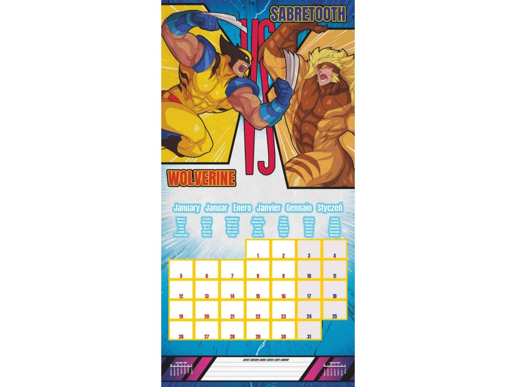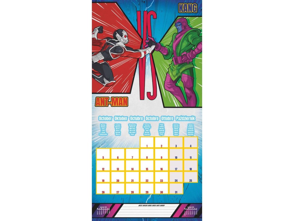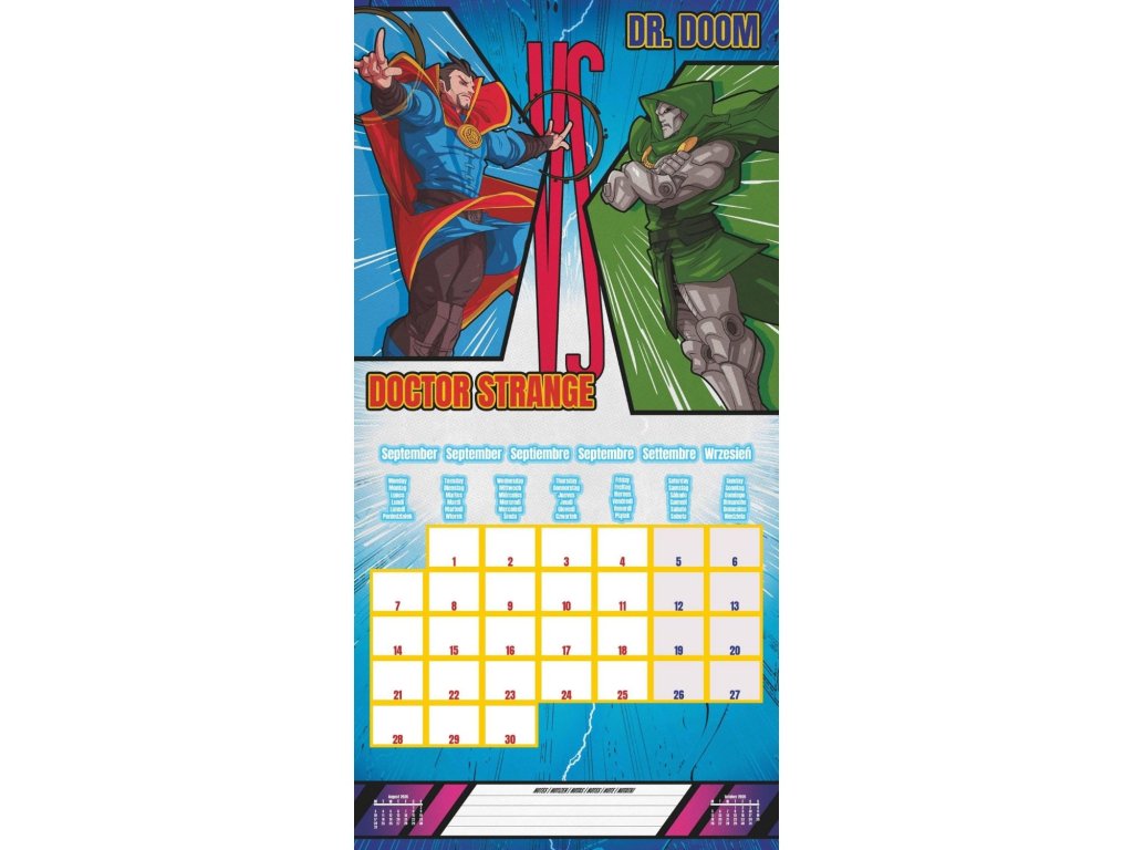 Oficiálny nástenný kalendár pre fanúšikov komiksových príbehov od Marvel Comics na rok 2026 je tu! Nenechaj si uniknúť parádne ilustrácie slávnych superhrdinov a superzločincov, ako sú Wolverine, Cyclops, Spider-Man, Captain America, Iron Man, Hulk, Doctor Strange, Black Widow, Thanos, Sabretooth, Red Hulk, Kang a ďalšie! Súčasťou tohto oficiálneho kalendára sú aj mesiace september až december roku 2025, teda ešte viac superhrdinov! Dátové rámčeky ti poskytnú dosť miesta na poznámky o narodeninách, schôdzkach, koncertoch a ďalších dôležitých udalostiach pre rok 2026. Kalendár je v angličtine a neobsahuje slovenské sviatky.