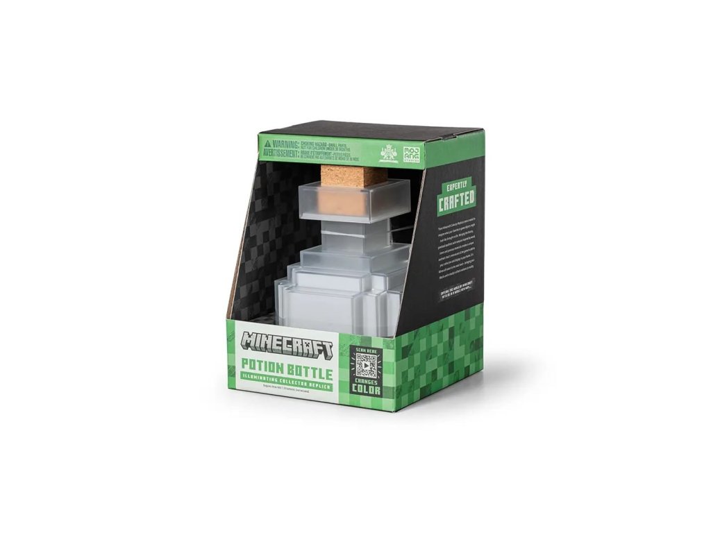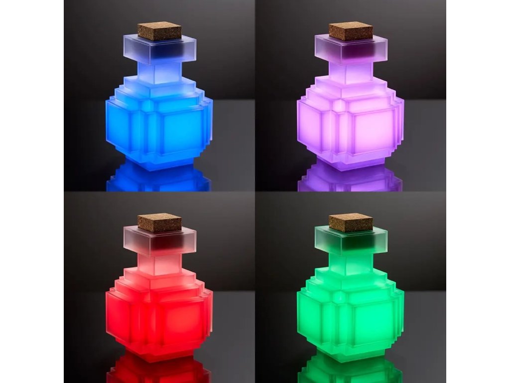 Nočná lampička v podobe fľaštičky s lektvarom z kockovej videohry Minecraft mení farbu z modrej na červenú, žltú, zelenú a fialovú. Lampička je opatrená korkovou zátkou. Napájanie: vyžaduje 3 ks batérie AAA (nie sú súčasťou balenia).