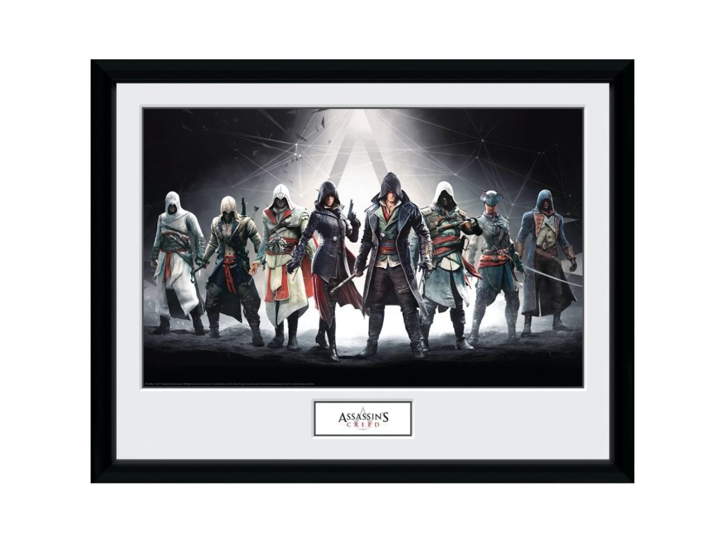 Zarámovaný obraz na stenu s hrdinami hernej série Assassin s Creed: Altair, Ezio Auditore, Evie a Jacob Fry a ďalšie.