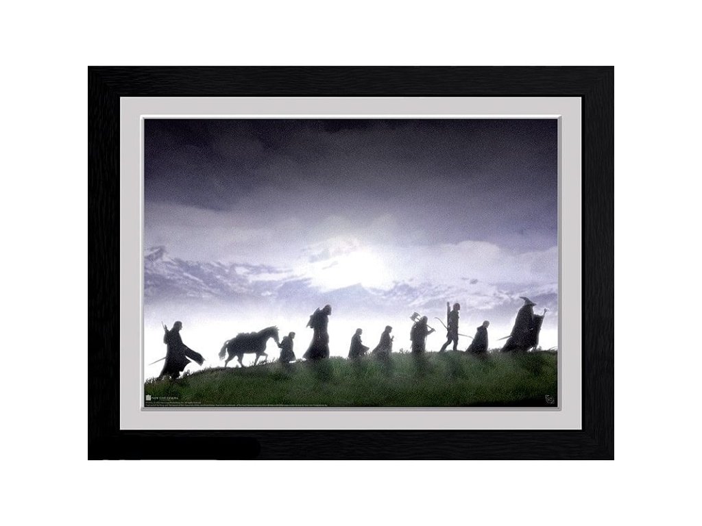 Obraz s putujúcim spoločenstvom z fantasy filmu Pán prsteňov urobí radosť fanúšikom a bude jedinečným doplnkom domácnosti či kancelárie. Šírka rámu je 2,5 cm.