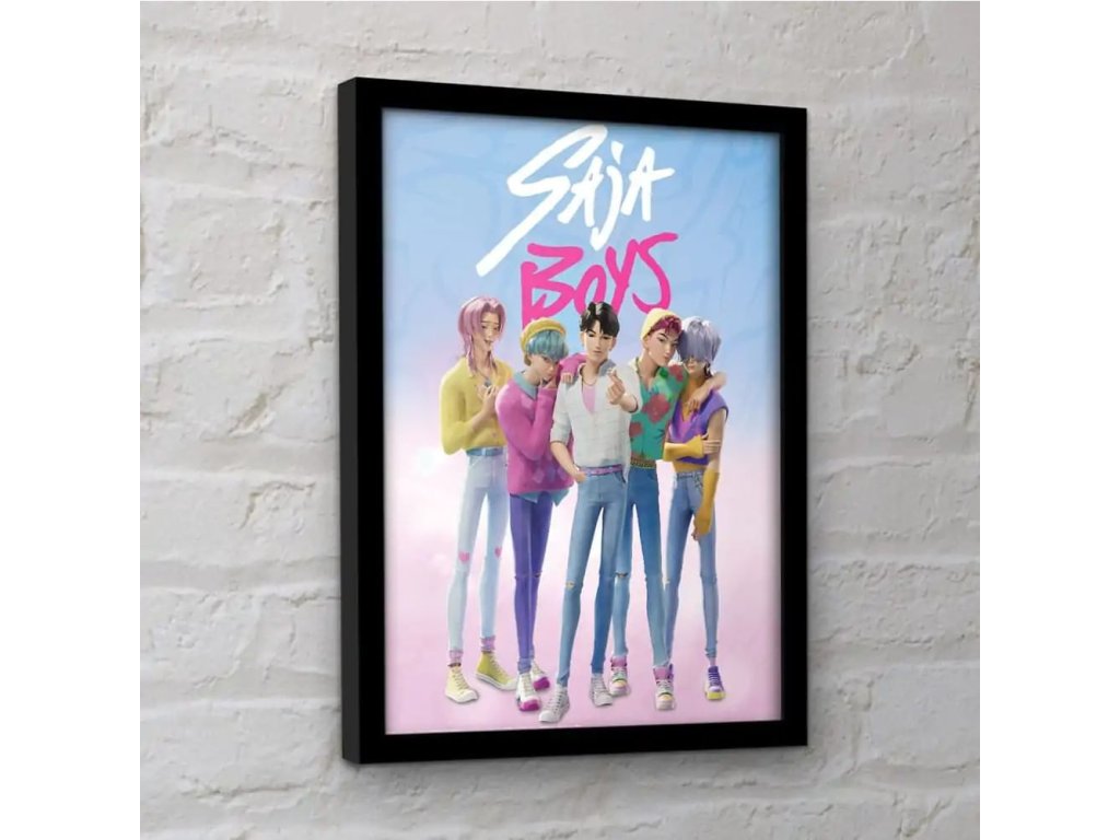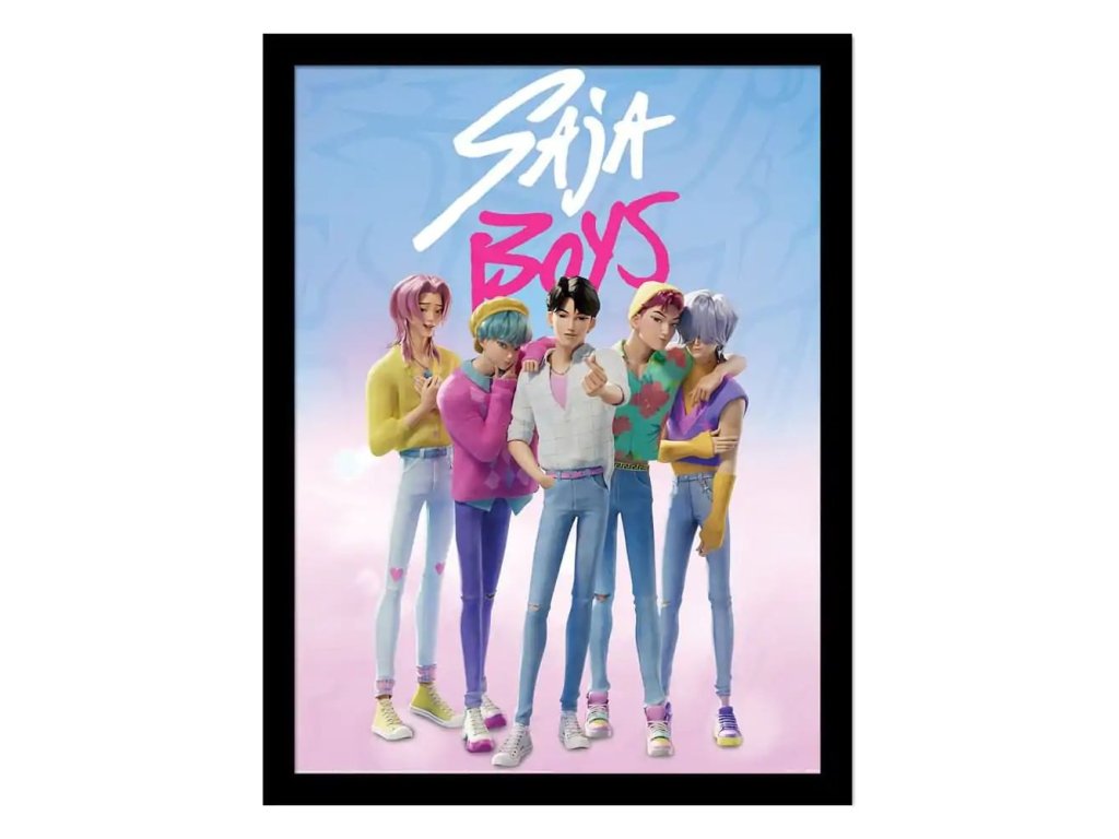 Vyzdob si pracovňu alebo domácnosť šmrncovým zberateľským plagátom s päťčlennou chlapčenskou skupinou Saja Boys, protagonistami amerického animovaného hudobného urban fantasy filmu KPop Demon Hunters (K-pop: Lovkyňa démonov) od Netflixu. Zarámovaný plagát pre správnych lovcov démonov!