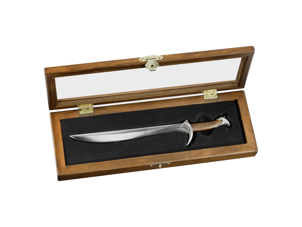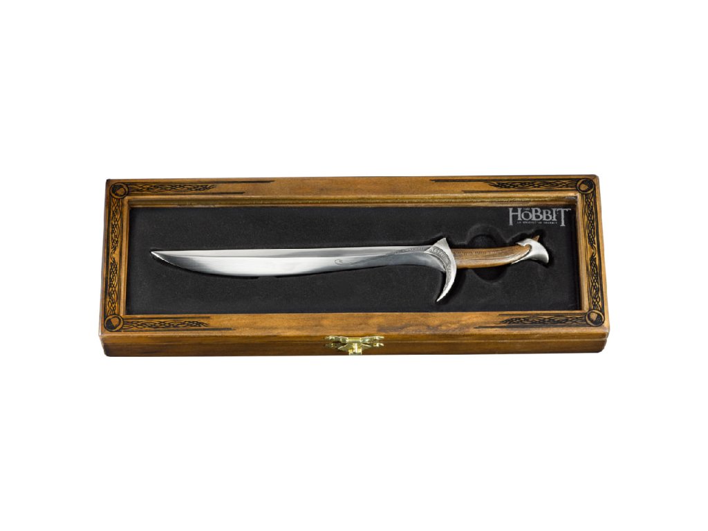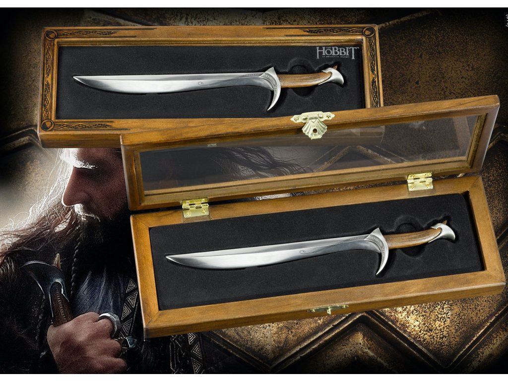 Zmenšená replika Thorinova meče (Orkrist) z filmového zpracování Tolkienova Hobita. Nůž je dlouhý 20,5 cm, součástí je dřevěná krabička o rozměrech 25 x 9 x 3 cm, velice věrná replika, která potěší všechny fanoušky Hobita.