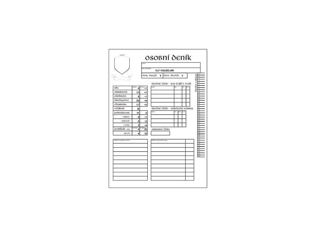 Obojstranný osobný denník pre Dračí Doupě. *denník nie je predvyplnený, kolónky sú v ňom prázdne - fotografia je iba ilustračná