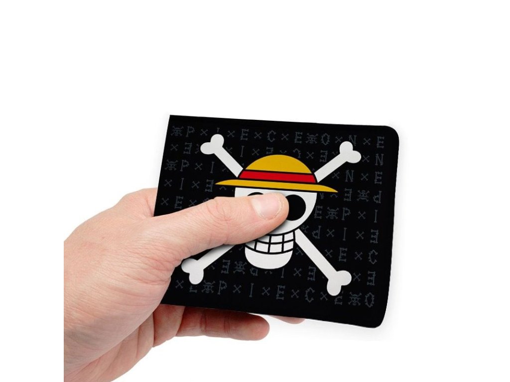 Peňaženka pre milovníkov japonskej anime a mangy One Piece s motívom lebky a skrížených hnátov poskytne ochranu a útočisko bankovkám a drobným minciam, rovnako ako platobným a ID kartám, lístkom, vstupenkám a ďalším dokladom.