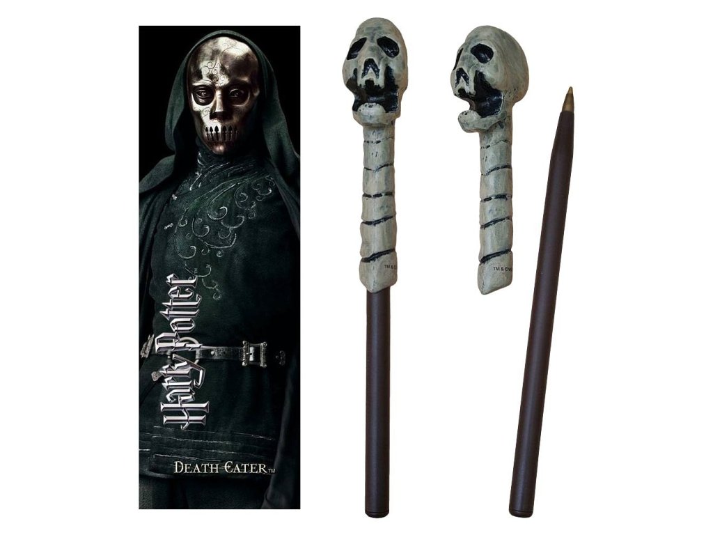 Stylová tužka v podobě kouzelnické hůlky Smrtijeda a knižní záložka s motivem této postavy z filmů o Harry Potterovi.