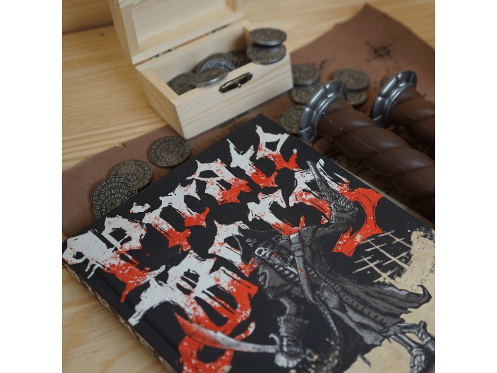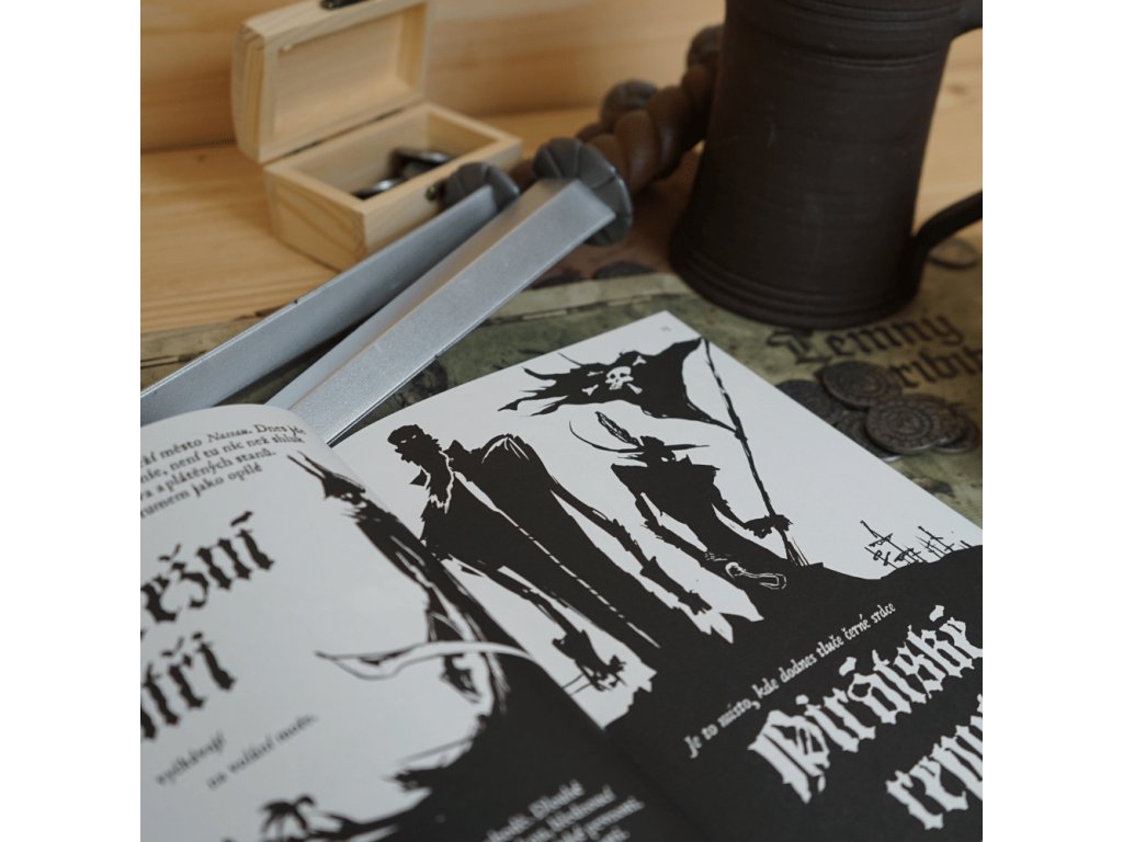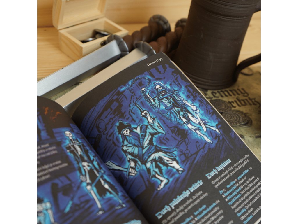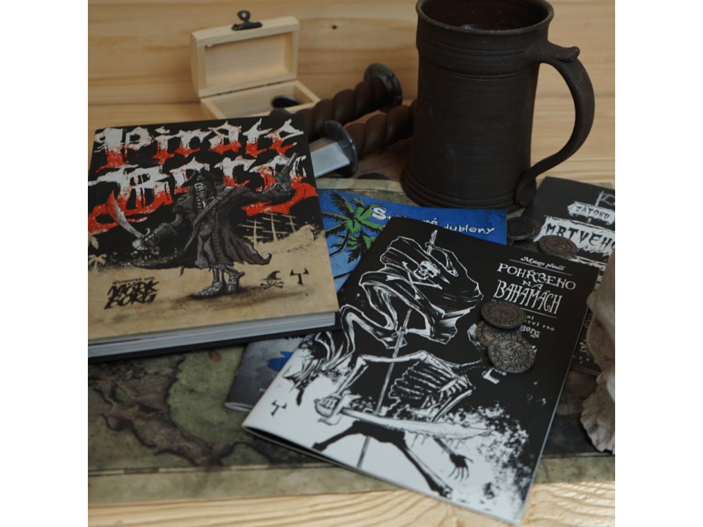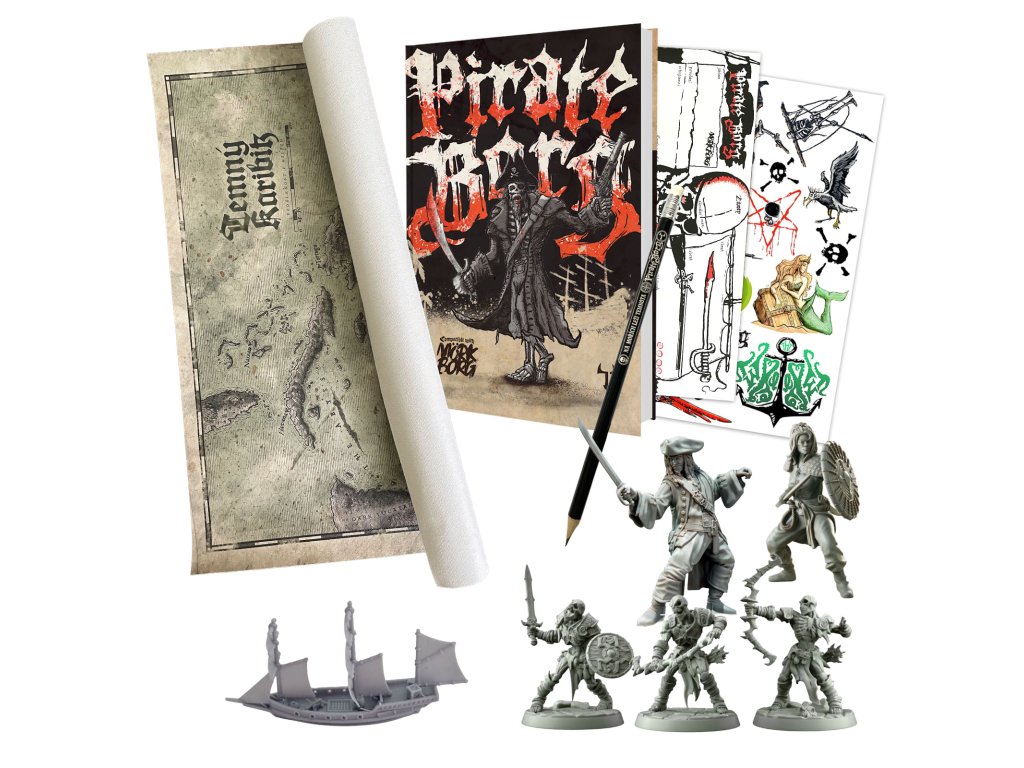 Pirate Borg - hra na hrdinov: Zberateľský komplet je nutnosťou pre všetkých pirátov a dobrodruhov, ktorí sa neboja vyplávať do skazených vôd Temného Karibiku. Tento zberateľský balíček obsahuje všetko, čo potrebujete, aby ste mohli rozprávať svoje vlastné príbehy plné rumu, nemŕtvych posádok a honby za prastarými pokladmi. V tejto sade nájdete okrem základnej knihy pravidiel aj sadu detailne spracovaných figúrok, ktoré na vašom stole oživia tie najhoršie hrôzy číhajúce v hlbinách. Každé dobrodružstvo, každý zisk aj stratu si môžete starostlivo zaznamenať do priloženého zošita denníkov postáv pomocou krásnej ceruzky, ktorú, rovnako ako mapu, samostatne nekúpite. Svoju pirátsku dušu môžete prejaviť aj vďaka priloženým samolepkám. Vrcholom kompletu je potom exkluzívna mapa Temného Karibiku vytlačená na kvalitnom plátne, ideálna pre plánovanie vašich nebezpečných výprav. Pirate Borg je hra o pirátoch chlemtajúcich rum, galeónoch nemŕtvych, bájnych pokladoch ukrytých v starobylých chrámoch a dobrodružstvách na šírom mori. Tento zberateľský komplet je perfektný pre hráčov, ktorí chcú hrať štýlovo a mať pri tom v rukách naozaj krásne herné doplnky, exkluzívne v našom obchode. Komplet obsahuje: Knihu Pirate Borg - Hra na hrdinov Figúrky Skeleton Crew (3 ks) Figúrka lode Leviathan Figúrka kapitána Jakea Swallowa Figúrka pirátky Celeste Bonewitch Bloček vytlačených denníkov Sada tematických samolepiek Sada kociek Pirate Borg Originálna zdobená ceruzka Mapa