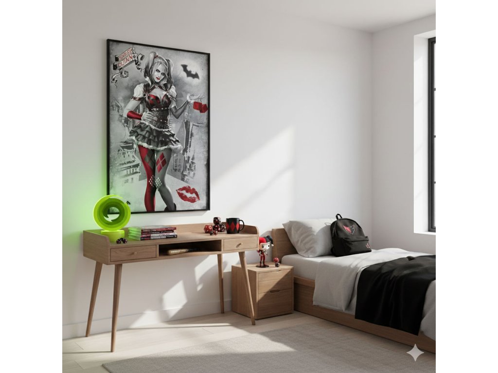Pekný plagát s Harley Quinn z videohry Batman: Arkham Knight. Originálny doplnok vašej pracovne aj domácnosti!