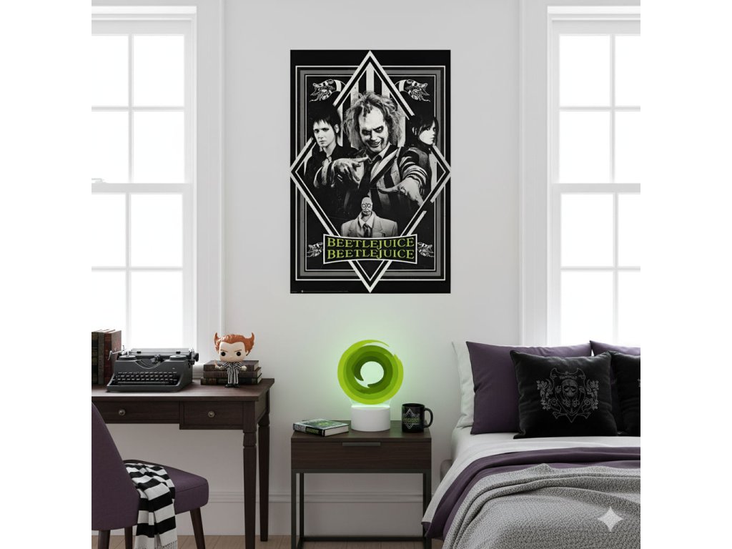 Dlho očakávaný návrat bio-exorcistu Beetlejuice k rodine Deetzových je tu, a ty ich môžeš všetkých vidieť na tomto skvelom plagáte z filmu Tima Burtona. Čiernobiely dizajn s výrazným zeleným nápisom Beetlejuice, Beetlejuice dodá tvojej izbe alebo kancelárii skvelú atmosféru z tejto hororovej komédie. Ideálne pre milovníkov kultových filmov, a všetkých, ktorí sa neboja trochy (ne)smrteľnej zábavy! Ale nezabudni, nehovor jeho meno trikrát za sebou... Certifikát FSC - vyrobené z udržateľných zdrojov!