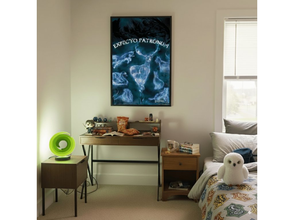 Plagát s grafikou na motívy filmov o Harrym Potterovi. Zvolajte Expecto Patronum!