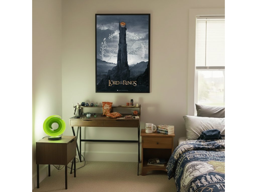 Sauronova veža, Barad-důr, leží v nehostinnej krajine Mordor, kde sa snúbi šero so šerom. A teraz sa s touto pochmúrnou krajinou pod dohľadom vševidúceho Oka môže snúbiť aj vaša izba alebo napríklad pracovňa. Krásny plagát pre fanúšikov Pána prsteňov!