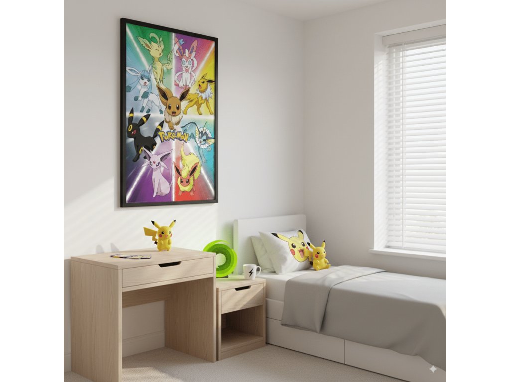 Získajte svojho obľúbeného Pokémona aj mimo Pokéballu! Tento plagát s roztomilým Eevee je ideálnym doplnkom pre všetkých zberateľov, trénerov a fanúšikov sveta Pokémon. Či už ste fanúšikom samotného Eevee alebo všetkých jeho evolučných foriem, tento plagát vám vyčarí úsmev zakaždým, keď sa naň pozriete.