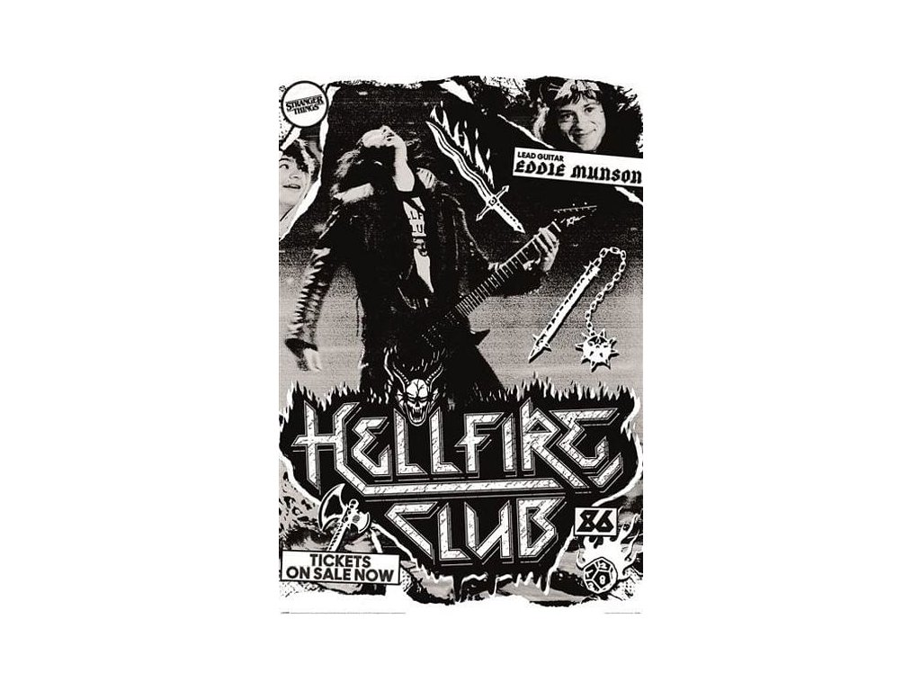 Plagát s grafikou Hellfire Club Eddie Munson 86 bude skvelým doplnkom domácnosti aj pracovne fanúšikov seriálu Stranger Things.