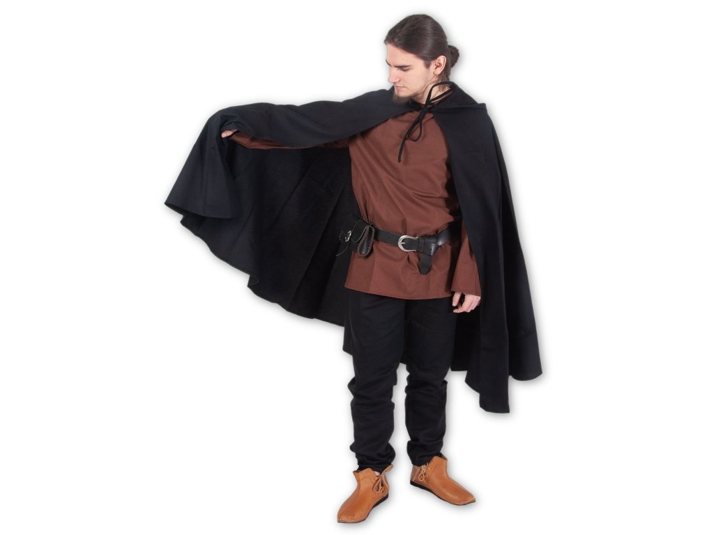 Podarilo sa vám striasť bandu sprepadnutých trolov a teraz utekáte späť k svojej družine. Tá už vás napokon očakáva - bez hraničiara nenájdu cestu do dediny tak ľahko. Vďaka svojho čierneho plášťa s kapucňou sa po lese pohybujete nepočuteľne, bez povšimnutia a široká kapucňa halí vašu tvár do tieňa… Na larpe či v dávnom stredoveku sa vám k historickým i fantasy kostýmom bude hodiť čierny keprový plášť dažďom. Dĺžka chrbta: S: 103 cm, M: 119 cm, L: 133 cm, XL: 147 cm. Tento plášť šijeme aj v ďalších farbách: hnedý, tmavo zelený a svetlo zelený.