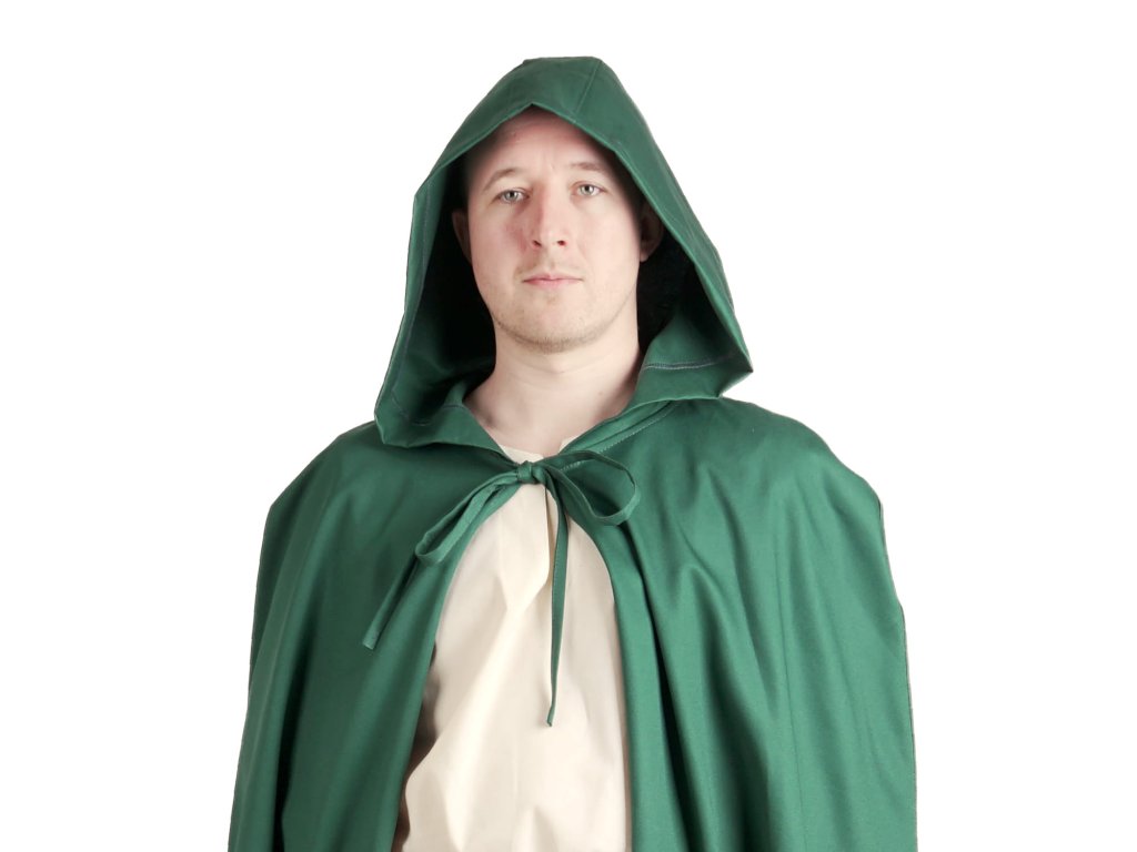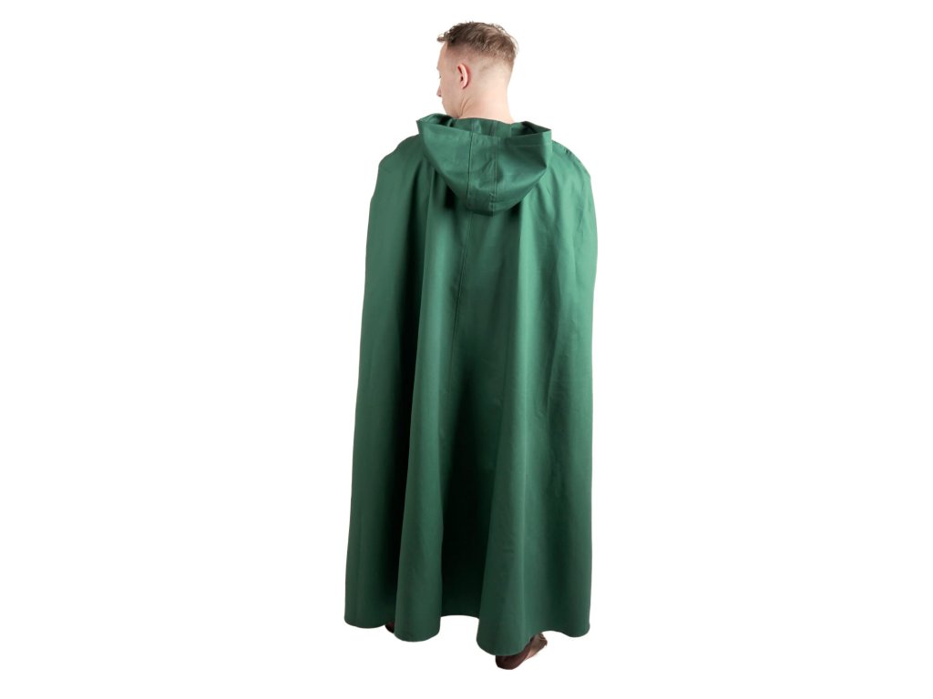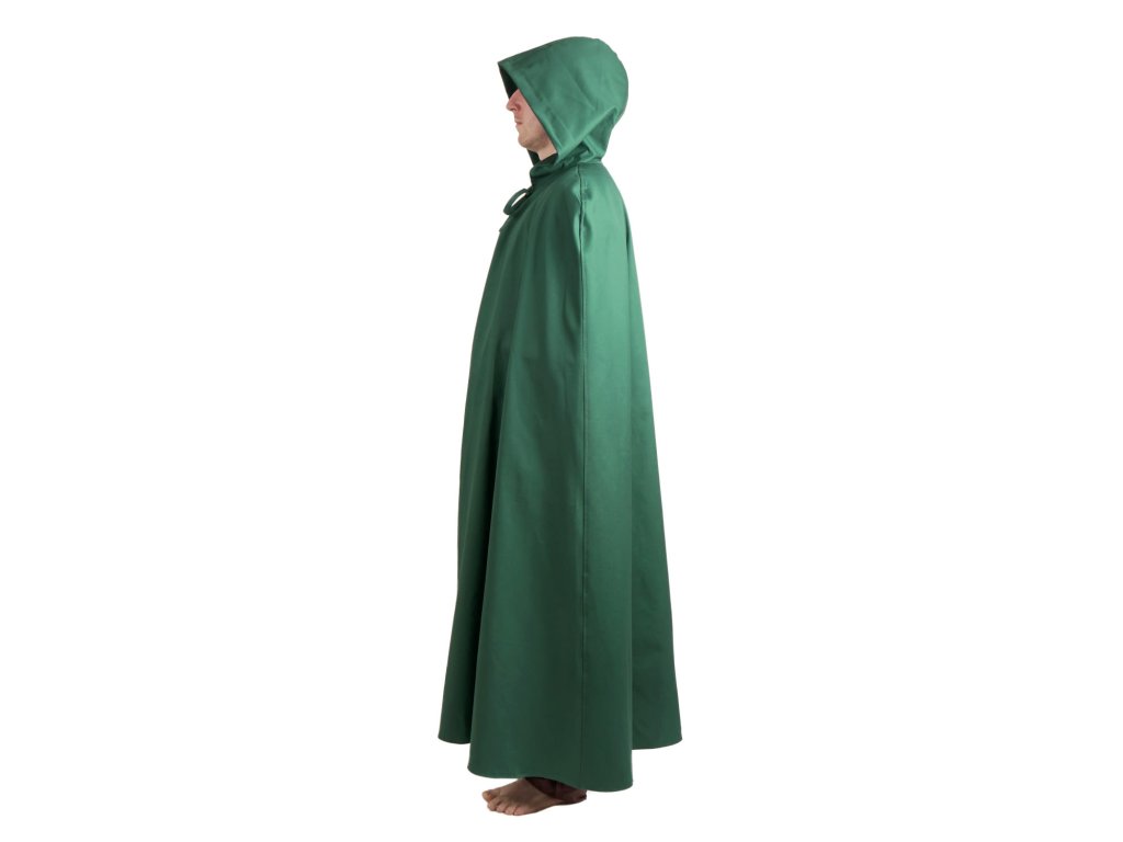 Hraničiar nesie dôležitú správu čarodejnici čakajúcu vo svojej chýši hlboko v starom hvozde. Obratne sa pohybuje po chodníkoch lesnej zveri a nepoľavuje v chôdzi, nech už je počasie, aké chce. ľahším dažďom. Tmavo zelený keprový plášť Hraničiar so širokou kapucňou, ktorá vrhá tieň dávnych čias do tváre, využijete na larpe aj na stredovekých slávnostiach k najrôznejším historickým a fantasy kostýmom. plášť šijeme aj v ďalších farbách: čierny, hnedý a svetlo zelený.