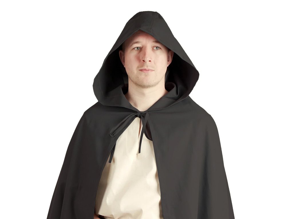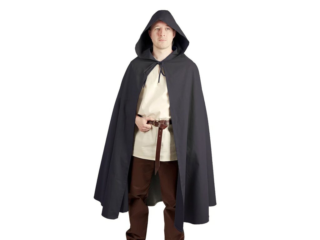 Plášt, to je skvelá ochrana pocestných pred vetrom a zimou. Dobre poslúži ako prikrývka alebo ako vrchný odev. Môžu ho nosiť ako muži, tak ženy. Šedá varianta jednoduchého plášťa, vyrobená z pevnej bavlnenej látky, má polkolesový strih, zaväzuje sa šnúrkou pod krkom. Výborný doplnok takmer ku každému kostýmu pre dreváreň či LARP. V ponuke je v štyroch veľkostiach (S - dĺžka 100 cm, M - dĺžka 110 cm, L - dĺžka 120 cm, XL - dĺžka 130 cm - dĺžka je meraná od krku na zadnom diele, bez kapucne). Viac o použitom materiáli sa dočítate tu: popis materiálov. Tento plášť šijeme aj v ďalších farbách: čierny, hnedý, tmavo zelený a vínový.