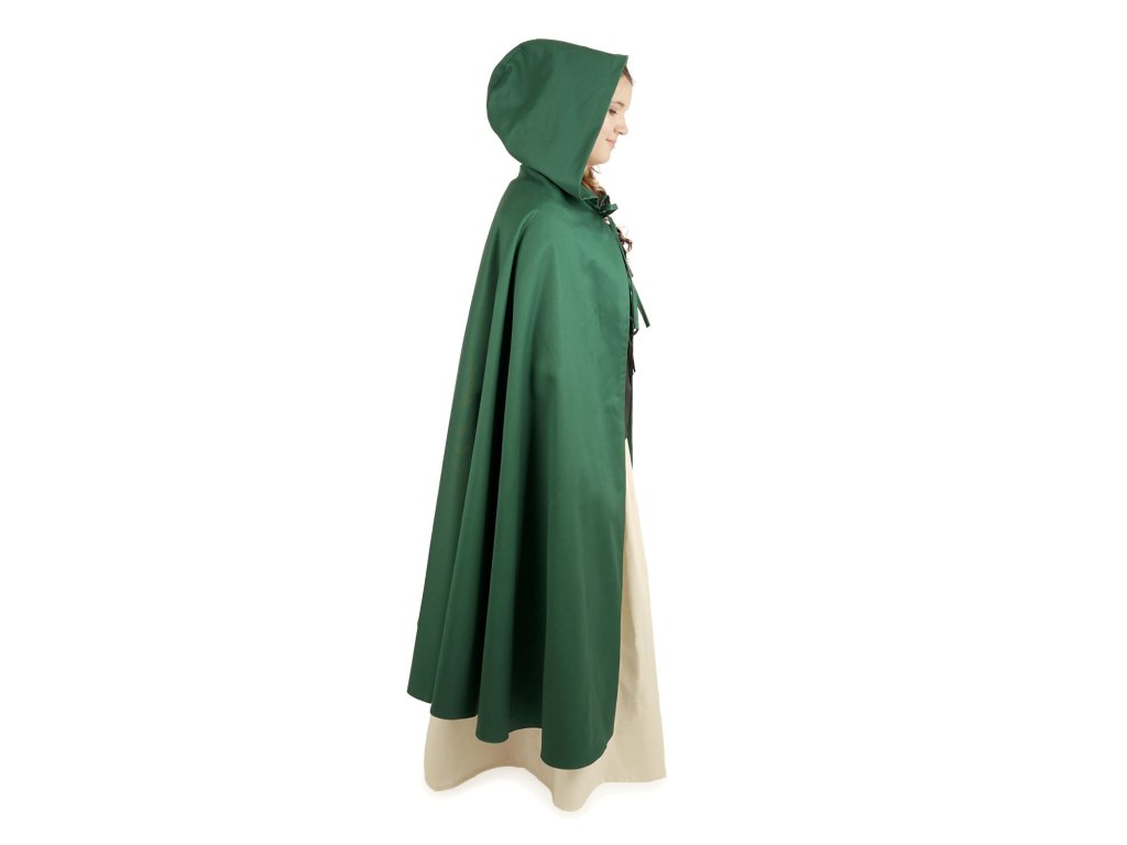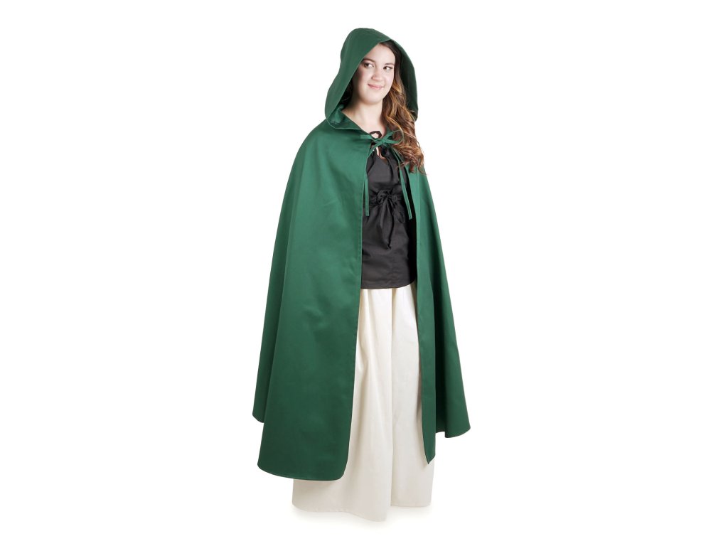 Plášt, to je skvelá ochrana pocestných pred vetrom a zimou. Dobre poslúži ako prikrývka alebo ako vrchný odev. Môžu ho nosiť ako muži, tak aj ženy. Náš jednoduchý plášť má základný polkolesový strih, je ušitý z pevnej bavlnenej látky (keper) a pod krkom sa zaväzuje na šnúrku. Plášť má praktickú kapucňu, ktorá vás ochráni pred dažďom či vetrom. Tento plášť je skvelým doplnkom k takmer každému fantasy kostýmu, hodí sa na larp, drevárne, divadlo, karneval a odvážnejšie sa s ním môžem smelo vydať napríklad do školy či na výlet. Plášť je v štyroch veľkostiach (S - dĺžka 100 cm, M - dĺžka 110 cm, L - dĺžka 120 cm, XL - dĺžka 130 cm - dĺžka je meraná od krku na zadnom diele, bez kapucne). Viac o použitom materiáli sa dočítate tu: popis materiálov. Tento plášť šijeme aj v ďalších farbách: čierny, hnedý, šedý a vínový.