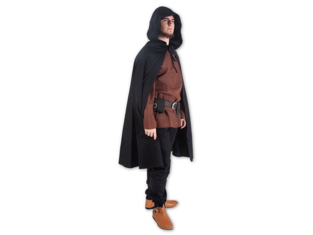 Náš jednoduchý plášť má základný polkolesový strih, je ušitý z pevnej bavlnenej látky a pod krkom sa zavazuje na šnúrku. Plášť má praktickú kapucu, ktorá vás ochráni pred dešťom či vetrom. Tento plášť je skvelým doplnkom k takmer každému fantasy kostýmu, hodí sa na LARP, drevárne, divadlo, karneval. Plášť je k dispozícii je v štyri veľkostiach! Viac o použitom materiáli sa dočítate tu: popis materiálov. Tento plášť šijeme aj v ďalších farbách: šedý, hnedý, tmavo zelený a vínový.