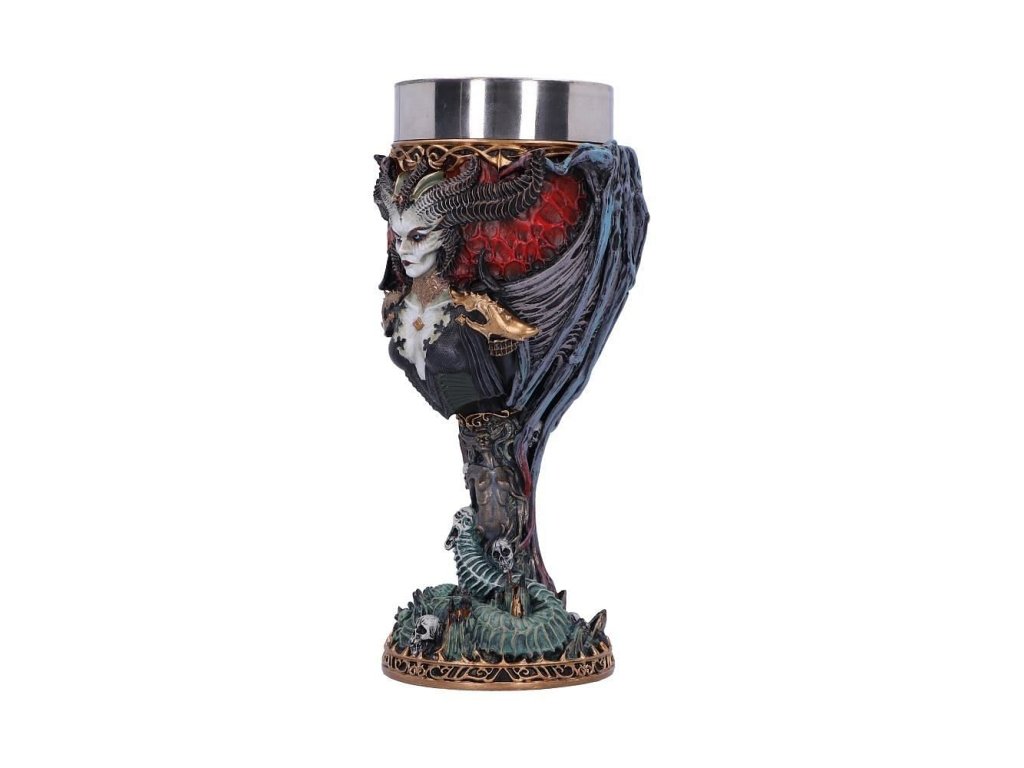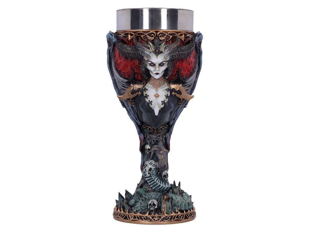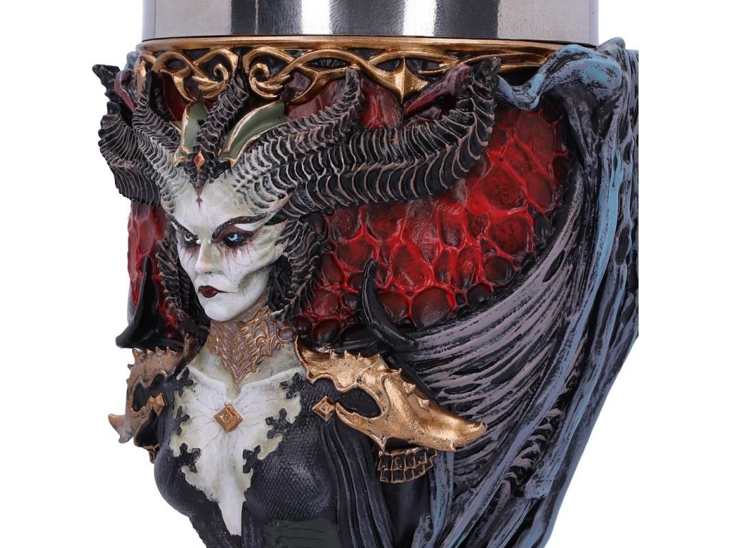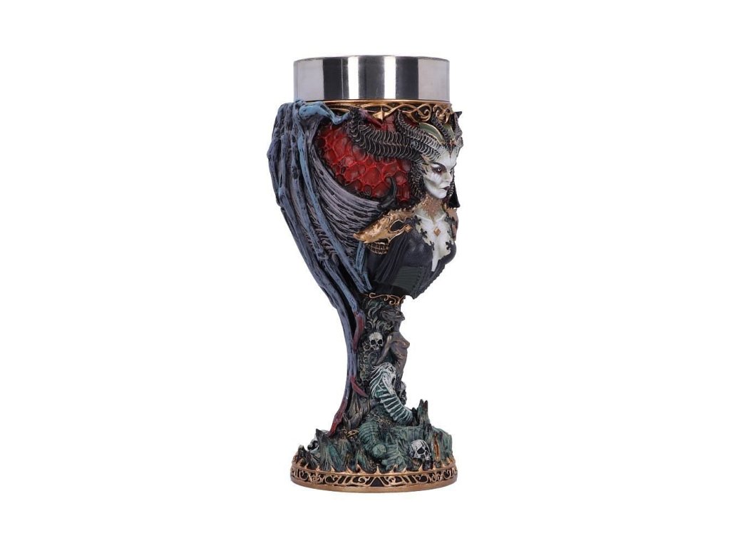 Krásny pohár s Lilith, Dcérou nenávisti, urobí radosť všetkým hráčom a fanúšikom kultovej videhory Diablo. Vnútri sa nachádza vyberateľný nerezový insert pre ľahšiu údržbu, samotný pohár je z resinu (syntetická živica). Resinový pohár nie je vhodný do mikrovlnnej rúry ani umývačky riadu.