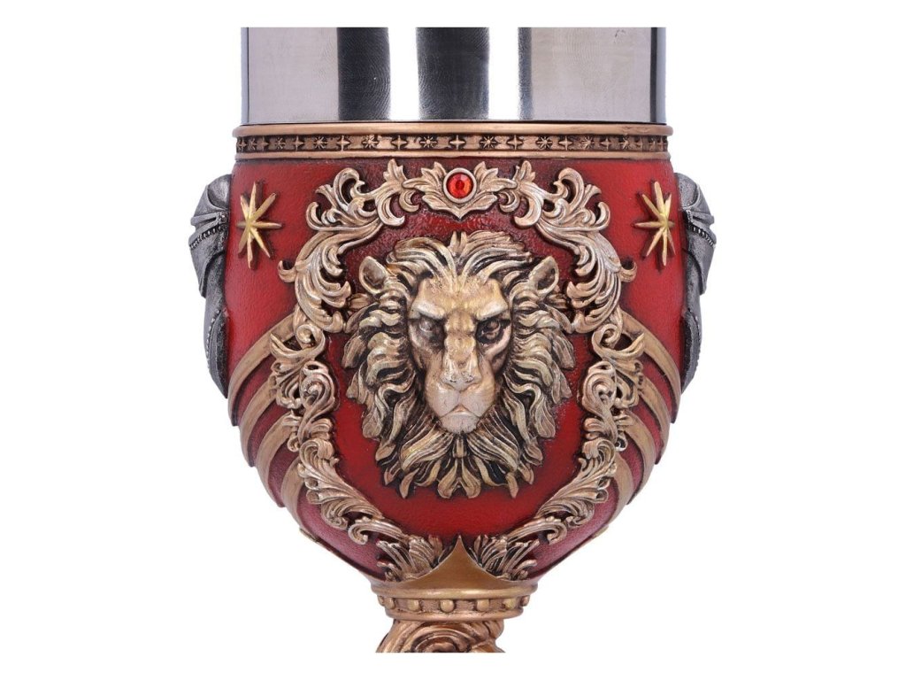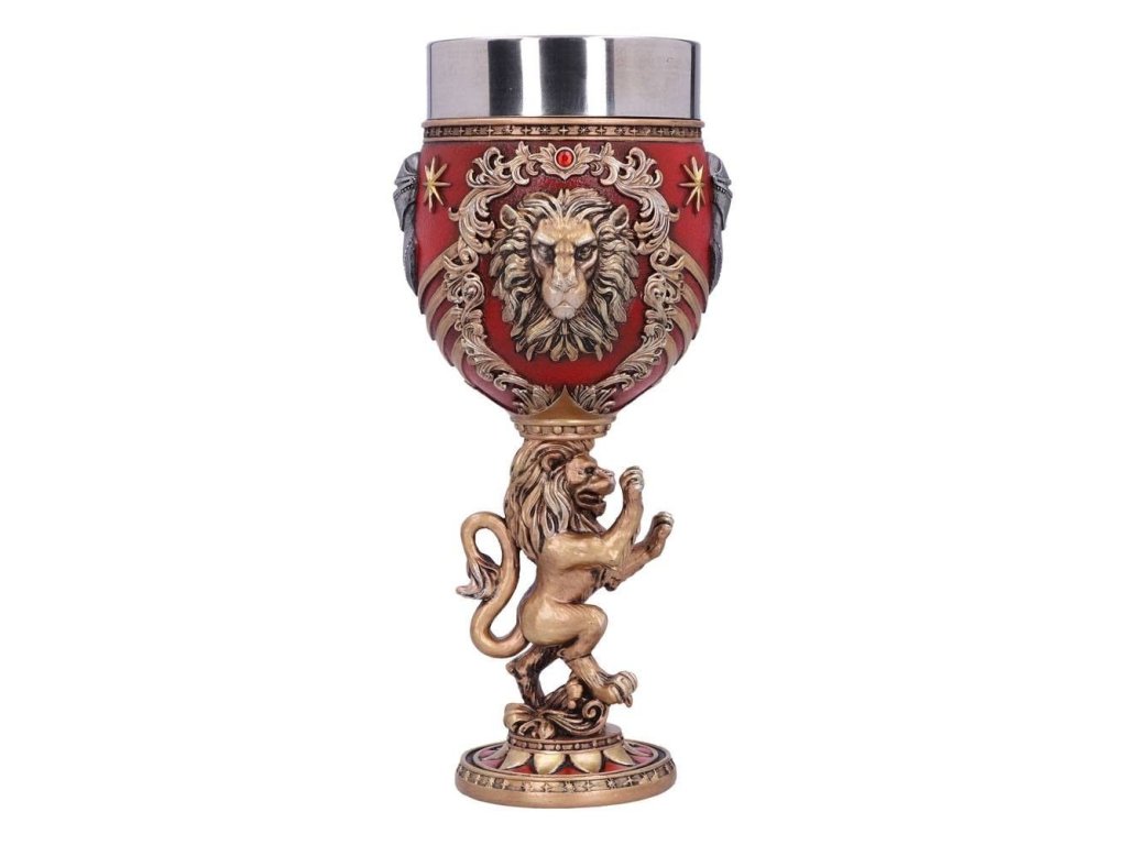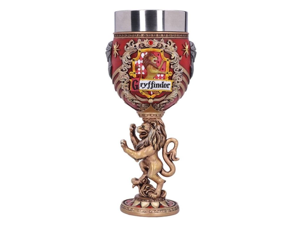 Len pre statočných, odvážnych a verných! Tento nádherný červený pohár s levím patrónom Chrabromilskej fakulty je ako vystrihnutý z hodovnej siene Rokfortu. Či už si doň nalejete maslový ležiak, čaj pri čítaní svojich obľúbených kúzelných príbehov, alebo niečo silnejšie na oslavu víťazstva nad baziliskom, tento pohár dodá každému nápoju magickú príchuť.