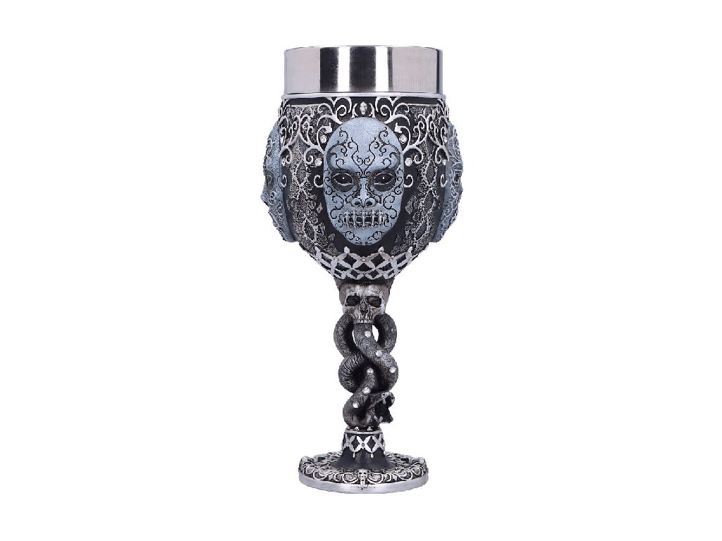 Pripite si pohárom pre zasvätených - na úspechy toho, ktorého meno sa nesmie vysloviť! Pohár pre všetkých Smrťožrútov z Harry Pottera bude štýlovým doplnkom domácnosti a pekným darčekom. Ručne maľovaný pohár zo syntetickej živice má vyberateľný nerezový insert pre jednoduchú údržbu. Pohár nie je vhodný do mikrovlnnej rúry ani do umývačky riadu.