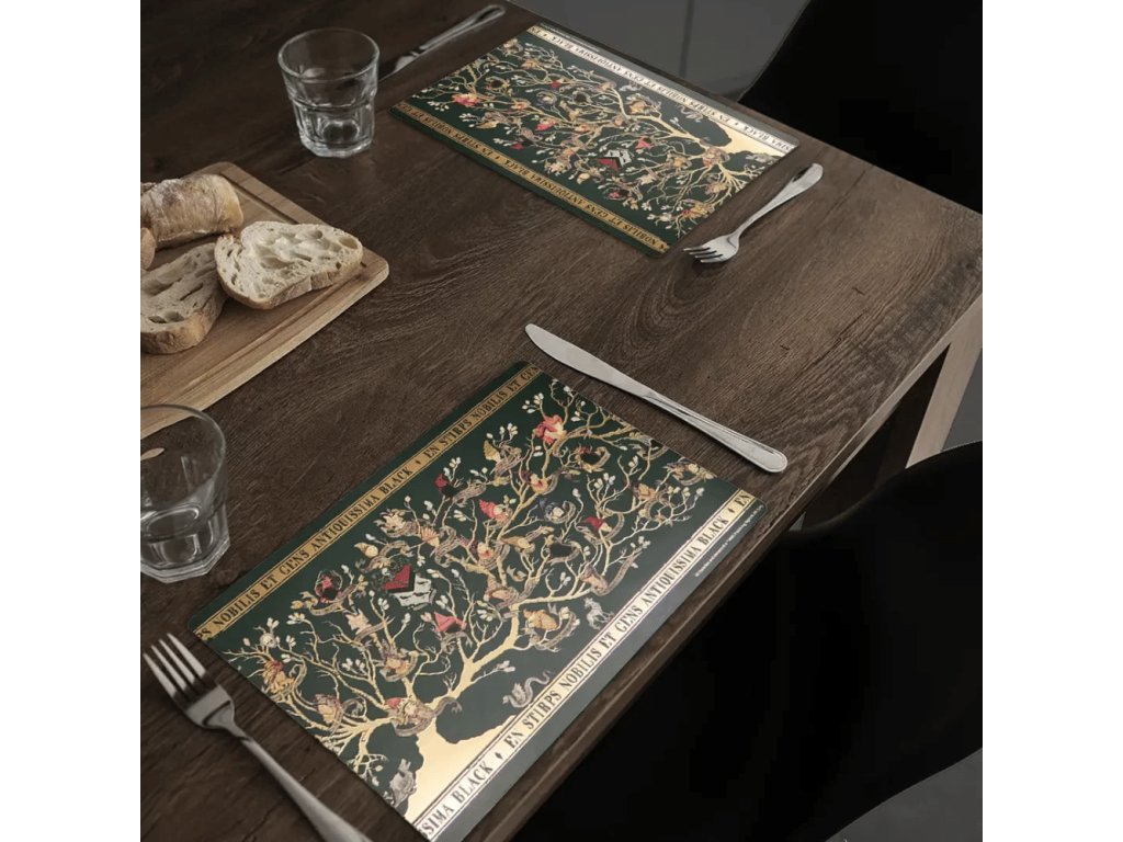 Prestieranie Harry Potter - Rodina Blackov (4 ks) prináša do tvojho stolovania dotyk temnej elegancie kúzelníckeho sveta. Každé z týchto štyroch prestieraní je ozdobené rodokmeňom urodzeného rodu Blackovcov, ako ho poznáš z tapisérie v dome na Grimmauldovom námestí č. 12. Odolný materiál, štýlové spracovanie a tajomná atmosféra robia z tejto sady ideálny darček pre fanúšikov série alebo perfektný doplnok.
