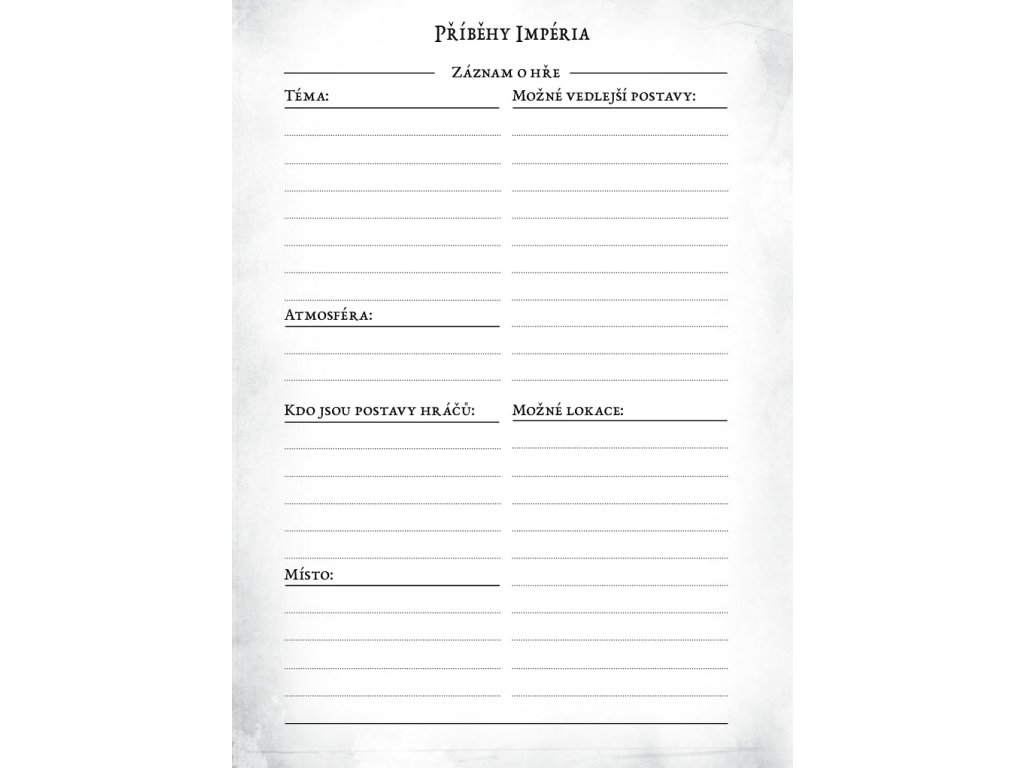 Prázdny Záznam o hre k hre Príbehy Impéria: Prepracované vydanie. Čiernobiele, formát A4. Predlohu pre tlač vlastnou cestou si môžete zadarmo stiahnuť.