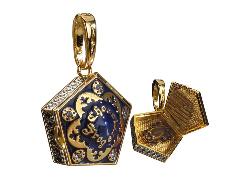 Úchvatný medailón (prívesok) pripomína krabičku na slávne sladkosti - čokoládové žabky, ktoré boli obľúbené a spájali sa s nimi zberateľské kartičky v románoch Harry Potter. Zdobený päťstranný šperk je otvárací a pripevnený krúžok je pripravený na nasadenie napríklad na túto kvalitnú retiazku. Časť z ceny je venovaná do projektu Lumos pomáhajúcemu miliónom detí po celom svete znovu získať právo na rodinu.