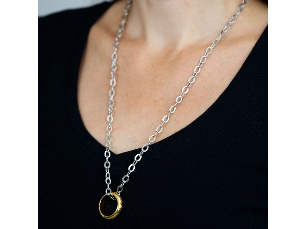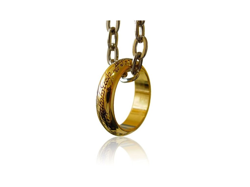 Až nazg durbatulek, až nazg gimbatul, až nazg thrakatulek, agh burzum-iši krimpatul. opatrenú postriebrenou retiazkou. Vnútorný priemer prsteňa je 2 cm, vonkajší 2,5 cm. Súčasťou je drobný čierny sťahovací vačok a čierna krabička s nápisom.